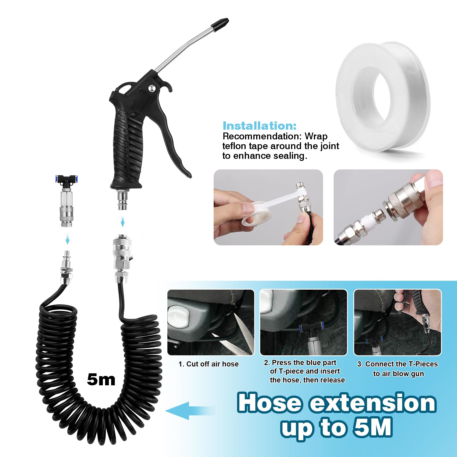 Quick Connection : This semi truck air blow gun kit includes a T-type quick connector for quick connection to the air hose, easy to install, perfect fit and you don't worry about leak