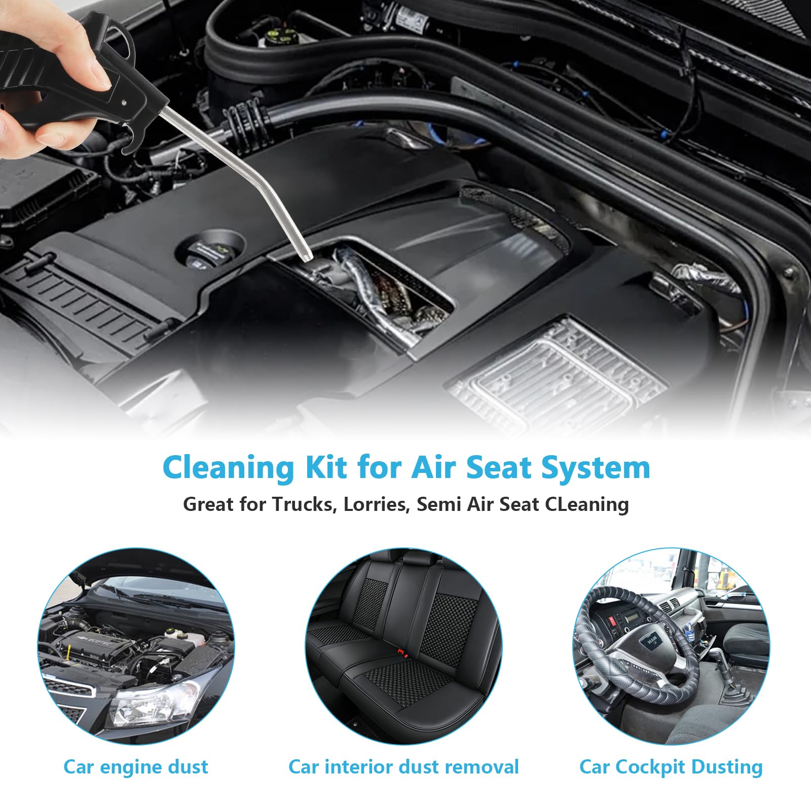 Cleaning Kit for Truck Cab: This air blow gun kit is designed for efficient and easy cab cleaning for trucks, trailers, tractors, cabs, car and etc