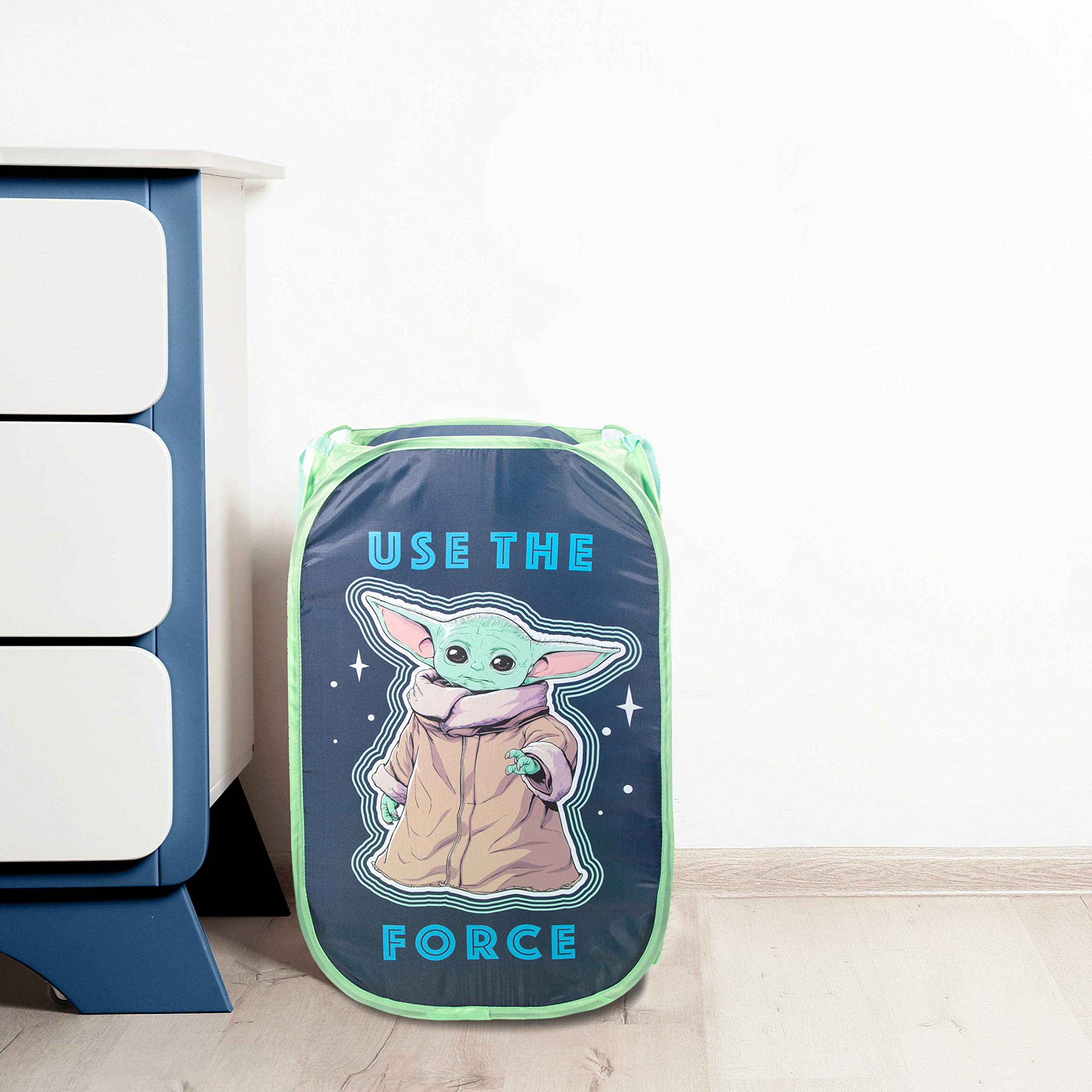 PERFECT FIT & FUN DESIGN - Star Wars the Mandalorian pop up hamper measures 14.17 x 14.17 x 22.83 inches. Add a touch of decorative enchantment to your room, bathroom, or laundry room with our fashionable and fun pop up hamper. Fun and colorful design features your child’s favorite character, Baby Yoda Grogu.