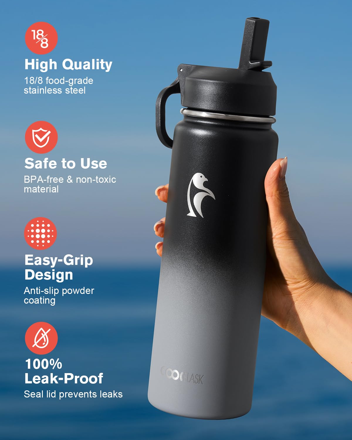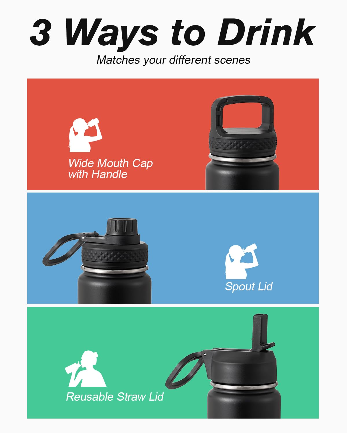 Travel Longer: With 24 oz capacity, the metal water bottle allows you to enjoy your trip easier with fewer refills, perfect for hiking, camping and sport events. It's easy to stay hydrated and refreshed on exciting adventures with such a versatile bottle