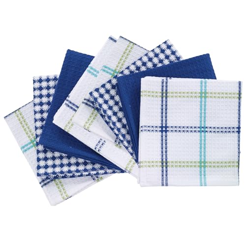 The all-purpose all-star of any household, this set of four T-fal Flat Waffle Dish Cloths ensures a dependable resource is always close at hand. No ordinary dish rag, these absorbent kitchen towels are well-crafted from 100% cotton and each textured dish cloth is highlighted by a wondrous waffle weave that allows water to wick along the surface and enables proper airflow that results in quick drying. If you're looking for the perfect dish wash cloths for kitchen use, you've found them. Each waffle weave dish cloth measures 12 in. by 13 in. (30 cm by 33 cm). This snazzy dish cloth set comes with 2 checked dish cloths, 1 striped kitchen dish cloth, and 1 solid dish cloth, all in your choice of color that is complementary to your style. Machine washable for effortless care.