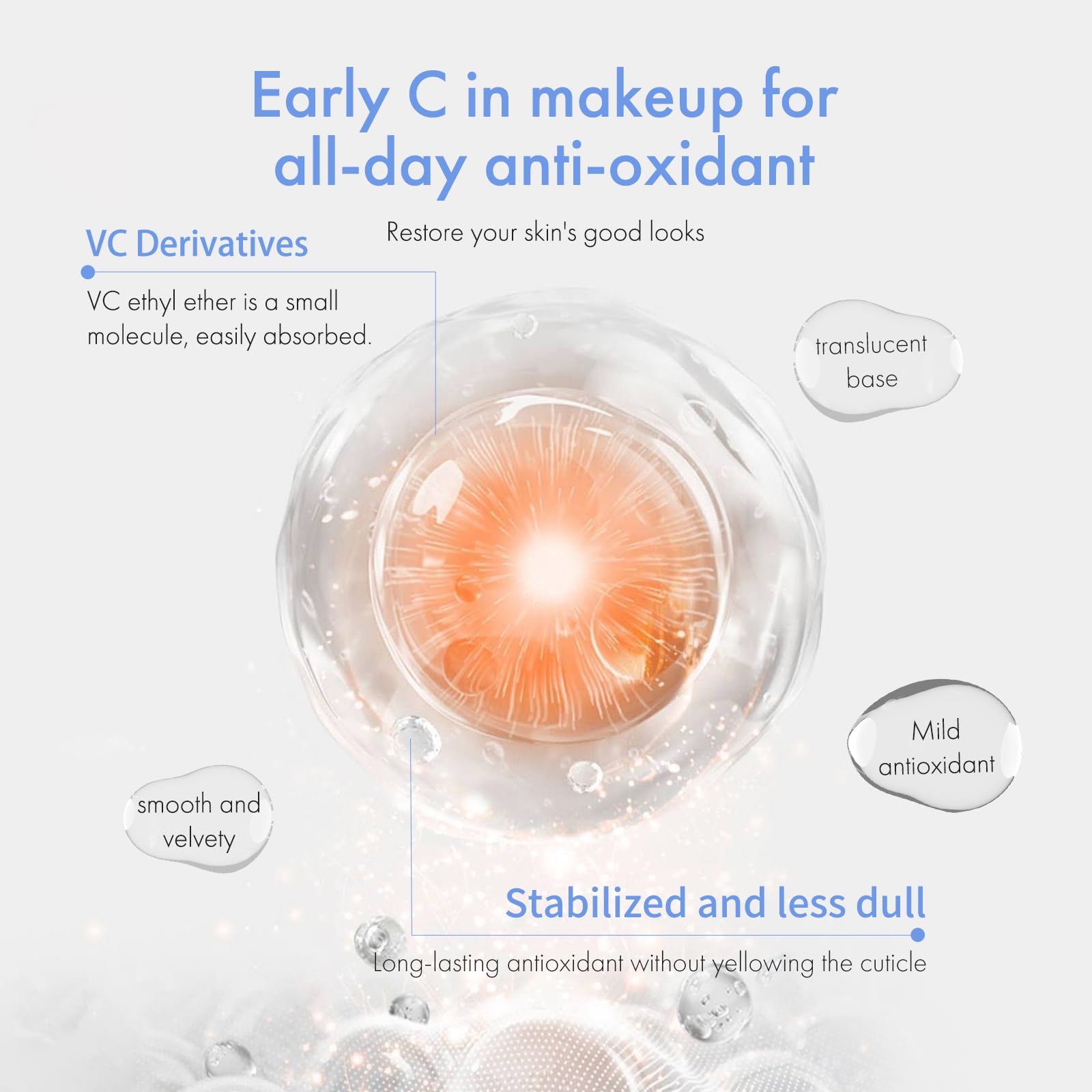 The Vitamin C Brightening Foundation is a game-changing product that merges skincare with makeup to provide a natural, glowing complexion. With 82% skincare ingredients, it nourishes your skin while delivering a lightweight foundation that evens out skin tone and minimizes the appearance of pores. Enriched with Ethyl Ascorbic Acid (Vitamin C), this foundation offers long-lasting antioxidant protection, helping to prevent environmental damage and reduce dullness, while leaving your skin brighter and healthier-looking. The ultra-fine texture, made with 0.18-micron particles, ensures smooth, even coverage without any heaviness. It glides on effortlessly to give a radiant finish that looks fresh all day long. The oil-control formula ensures that makeup stays put, without becoming oily or fading, even on long days. Gentle and fragrance-free, this foundation is perfect for all skin types, especially sensitive skin. Whether you’re looking for a foundation for everyday use or a product that combines skincare with makeup, this innovative formula helps restore your skin’s natural balance, leaving it glowing with vitality. Its easy-to-use formula makes it the perfect choice for beginners or anyone looking to simplify their beauty routine while maintaining a flawless complexion.