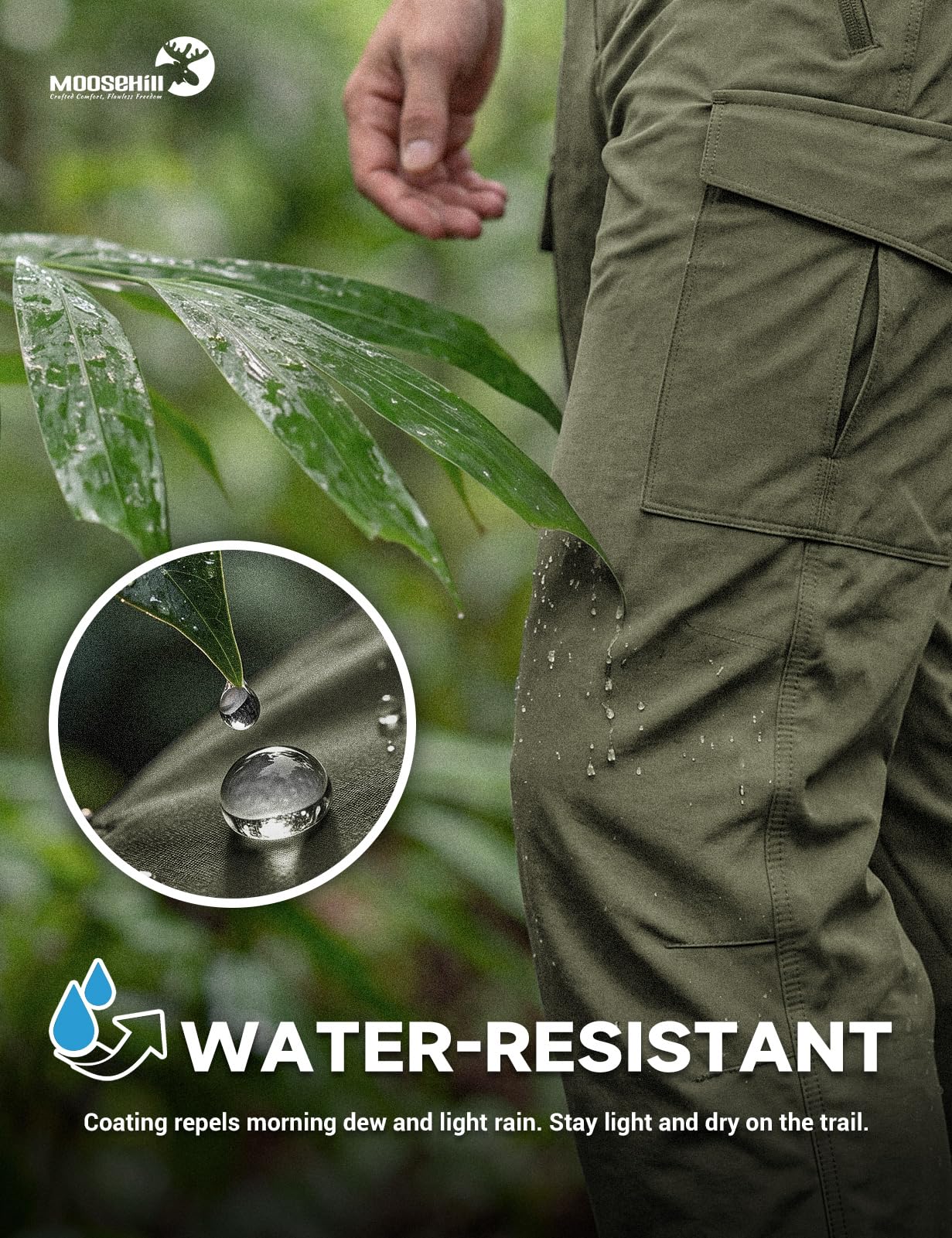 Water-Resistant & Stay Dry & Move Freely: Crafted with premium fabric, these cargo pants for men features advanced quick drying and water-repellent properties, ensuring that they stay dry even in the face of unexpected rain showers or splashes. The stretchable fabric provides exceptional flexibility, enabling effortless movement as you conquer rugged terrains or climb challenging trails. That's not all, they also feature lightweight, breathable, durable, sun protection, etc.