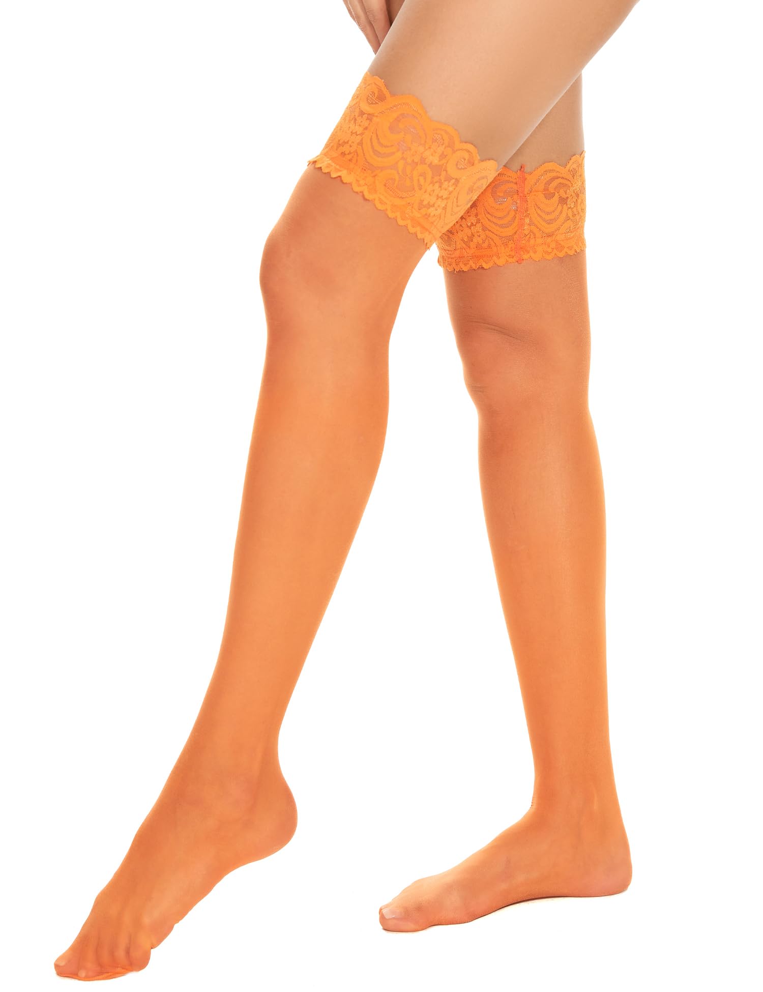 Material: 95% nylon, 5% spandex, made of sheer fabrics of exceptional quality and delicate floral lace top. A grade double silicone skin-friendly breathable anti-skip silicone