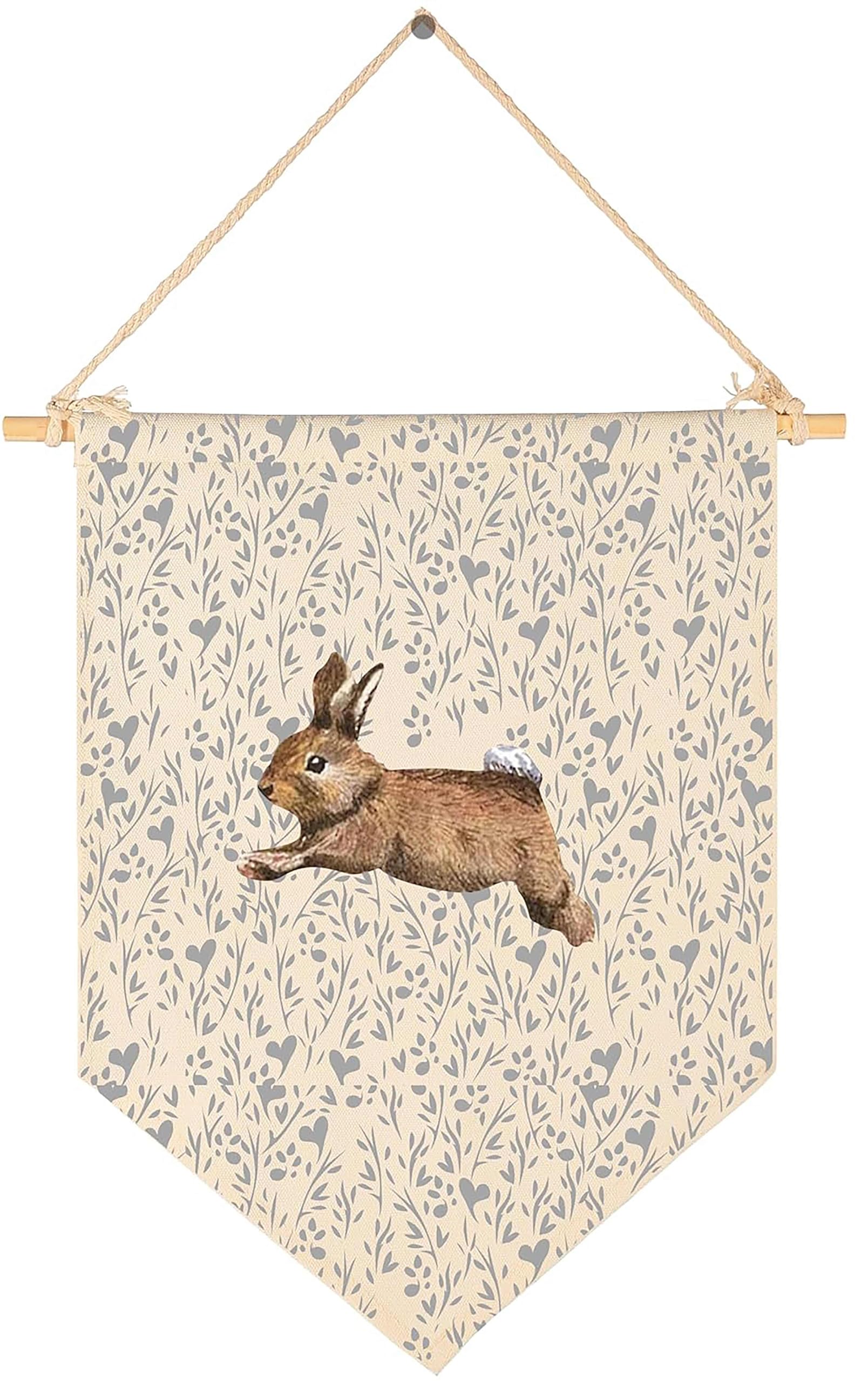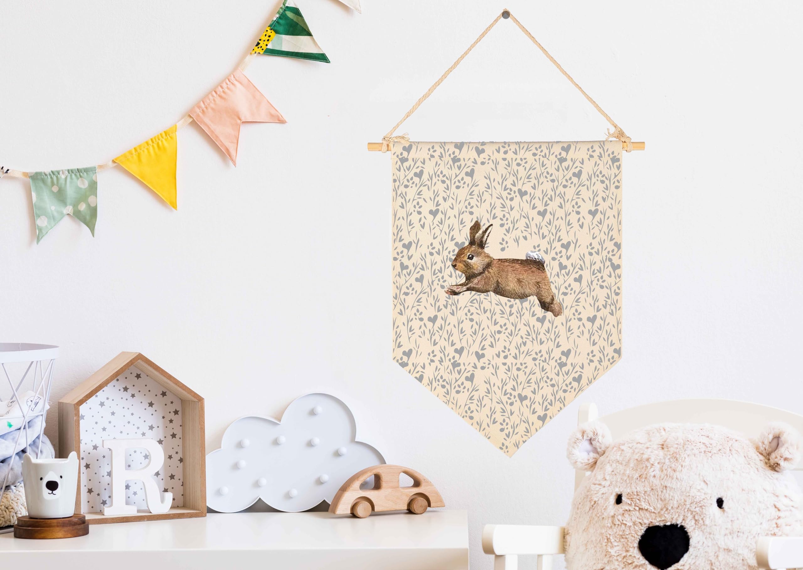 Crafted from natural cotton canvas, this 15.4 x 11 inch nursery wall banner brings a soft and calming touch to baby room, toddler space. The durable fabric keeps its shape with a natural texture, while the clear print stays bright with everyday use. Lightweight and easy to hang, it comes with a wooden dowel and pre-tied twine for quick setup on walls, doors or shelves. The versatile size fits small spaces without feeling crowded, making it perfect for creating a cozy nursery atmosphere. A thoughtful gift for baby showers, newborn arrival or first birthday.