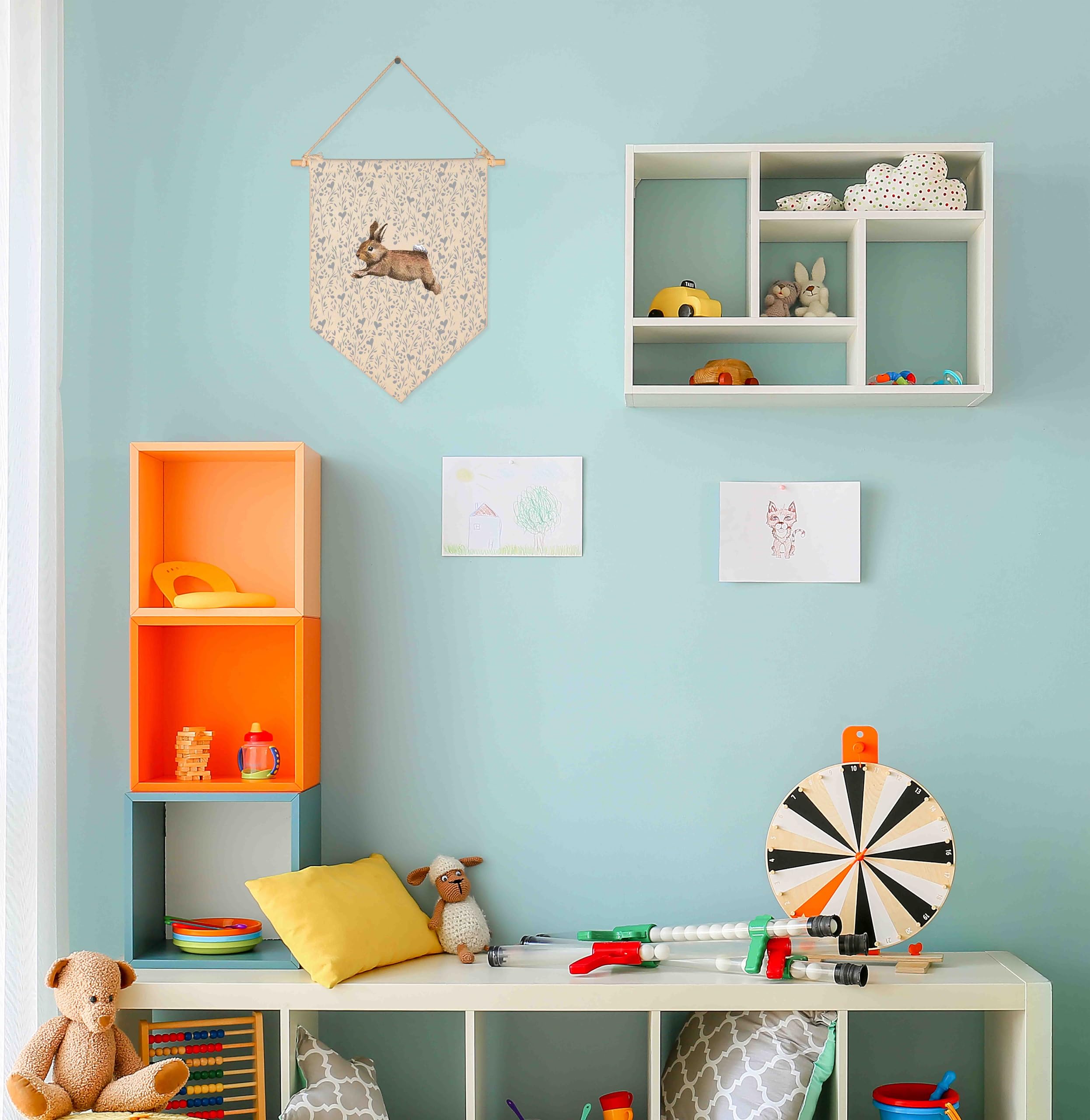Ready to Hang Design – All the Banners equipped with 1 tough twine and 1 strong Wooden stick; String and wooden stick is pre-tied,and it can be removed if you needed; You can easy hang it on your nursery walls, playroom wall,baby room walls,kid's room wall,doors or shelves