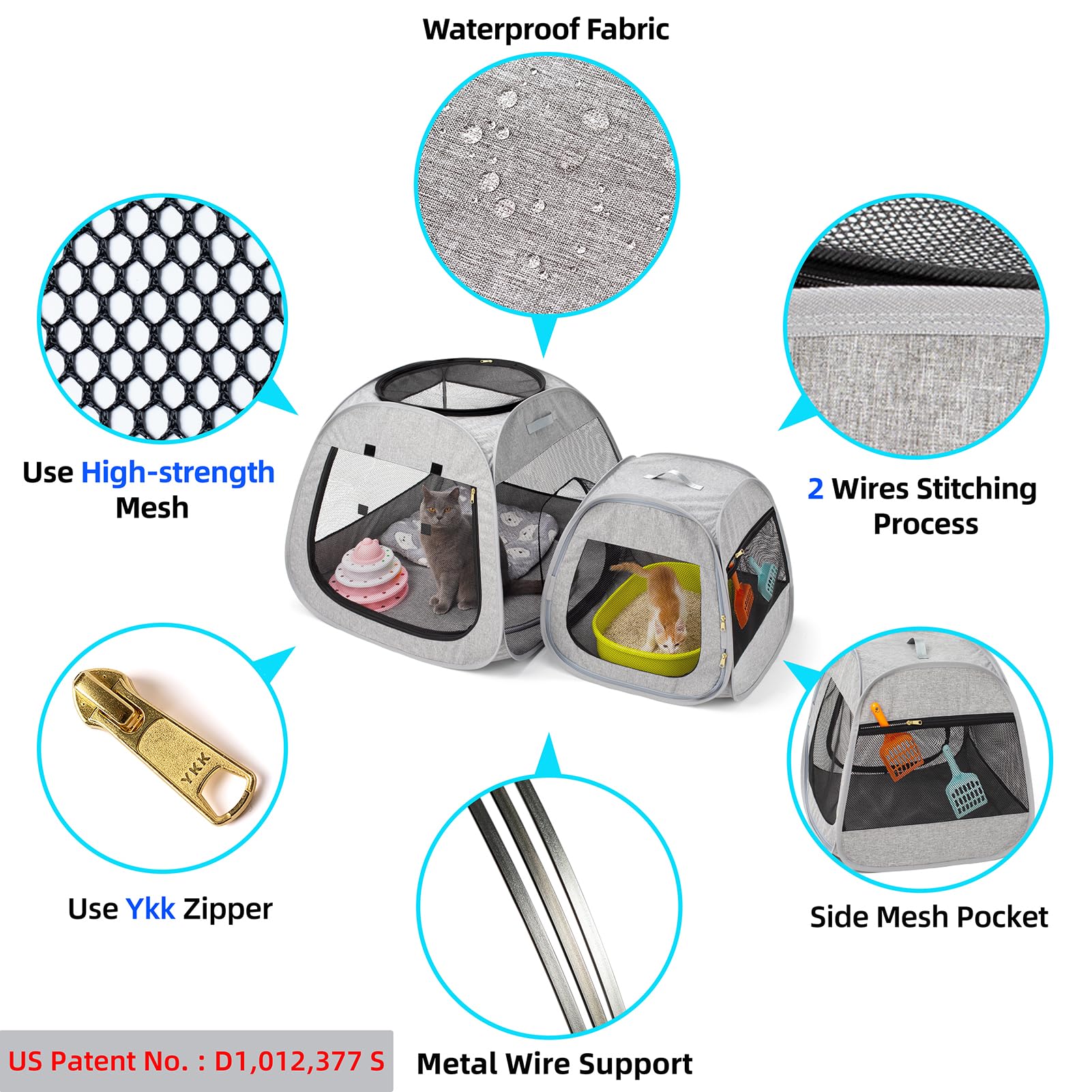 Strong and Sturdy: Pet playpen is made of 100% polyester 600D oxford and anti-tear sturdy net. With steel frame and nylon zipper, your whole outside pet appears a strong castle.