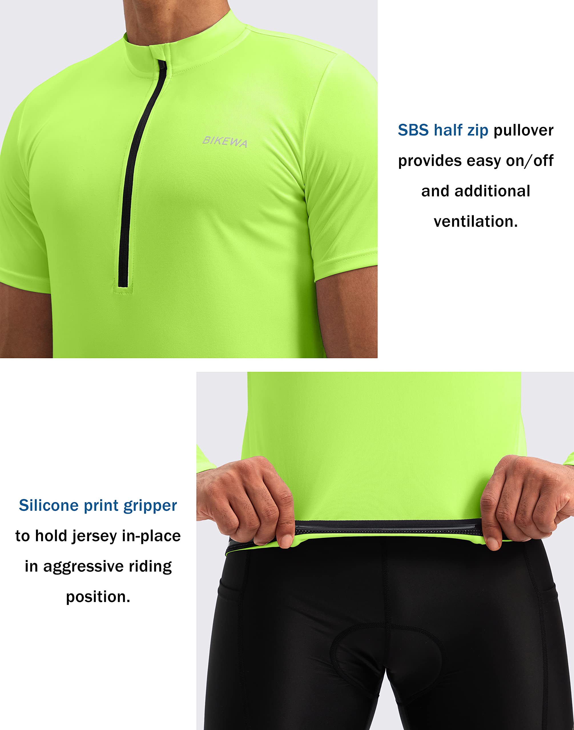 Easy Wear & Silicone Gripper Hems: 11 inch SBS half zip pullover provides easy on / off and additional ventilation, stand collar avoid pucker. Front and rear gripper to hold jersey in-place in aggressive riding position, preventing fluttering in the wind.