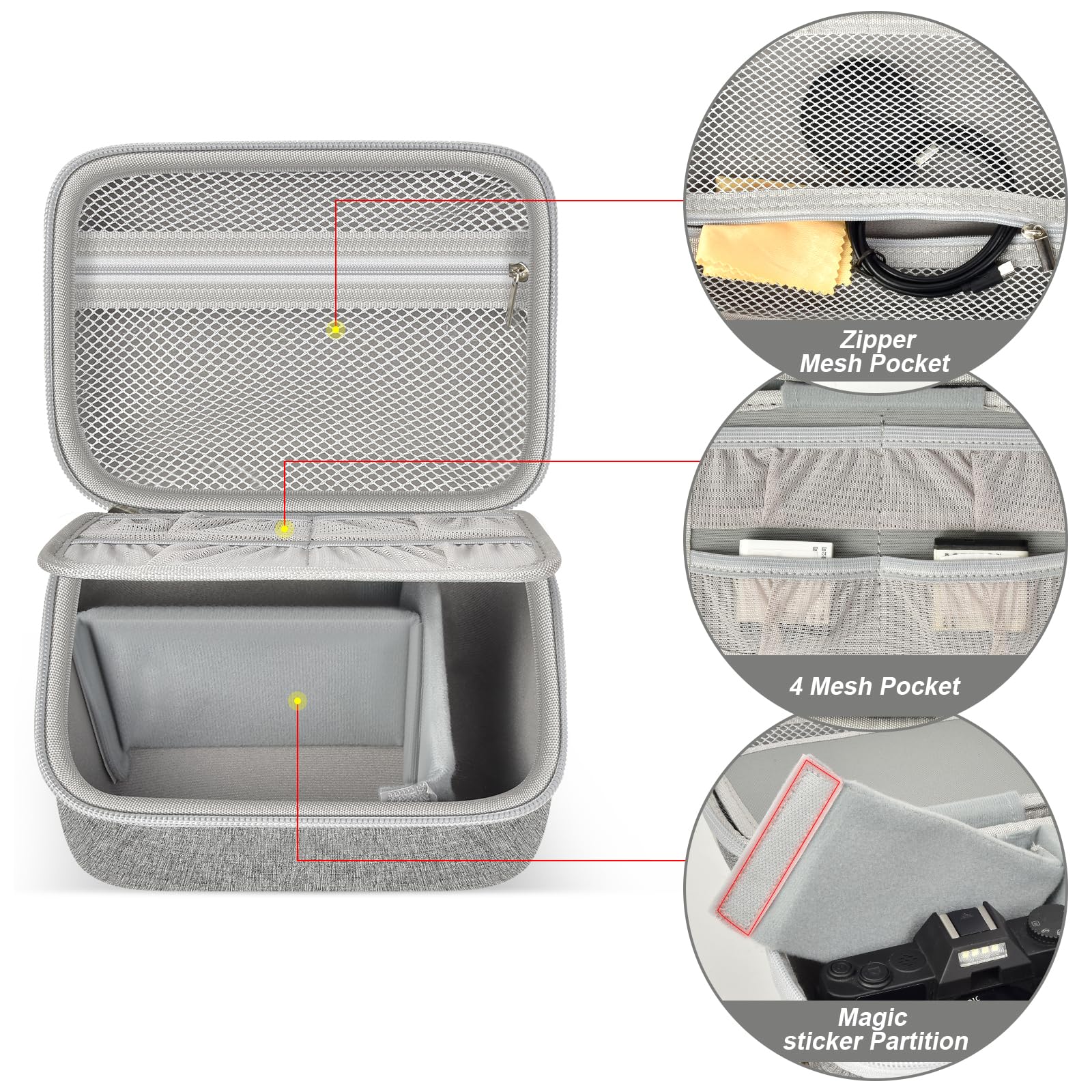 Large capacity camera carrying case: Digital camera case with accessories mesh pocket for rechargeable battery, HDMI cable, usb cable, cleaning cloth and more accessories. Whether you're traveling or camera photography, this extra storage space helps keep your 5k digital camera related equipment organized and within reach