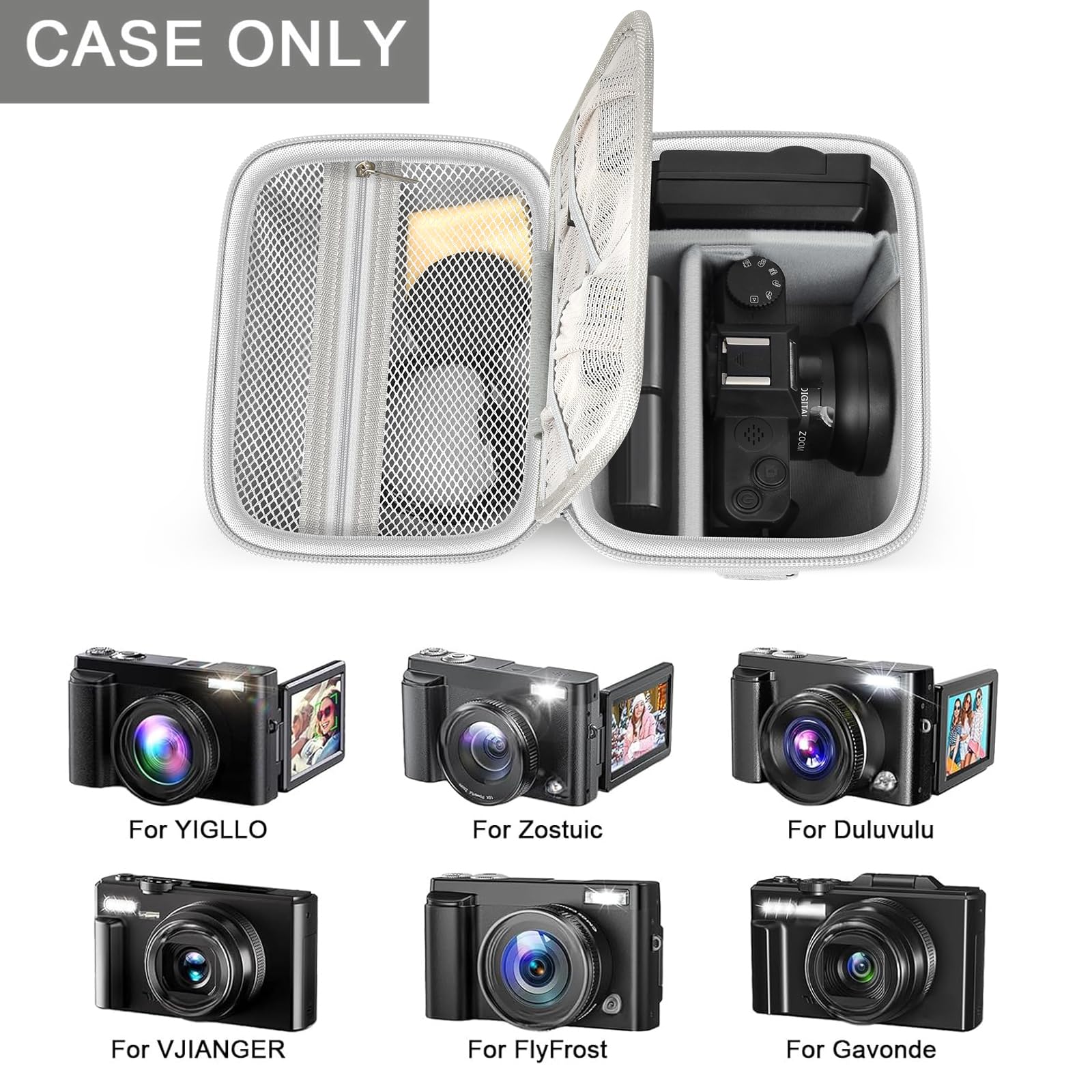 5K 4K digital vlogging camera case:Picture cameras storage holder design for Duluvulu/ for YIGLLO/ for Gavonde/ for VJIANGER/ for Zostuic/ for FlyFrost/ for TEBNGIHNM/ for Zheozeig/ for Oiadek/ for KODAK/ for AOREGRE digital camera for Canon digital camera, vlogging camera for YouTube External size: 7.28*5.12*5.04 inches(Box only, not include cameras or accessories)