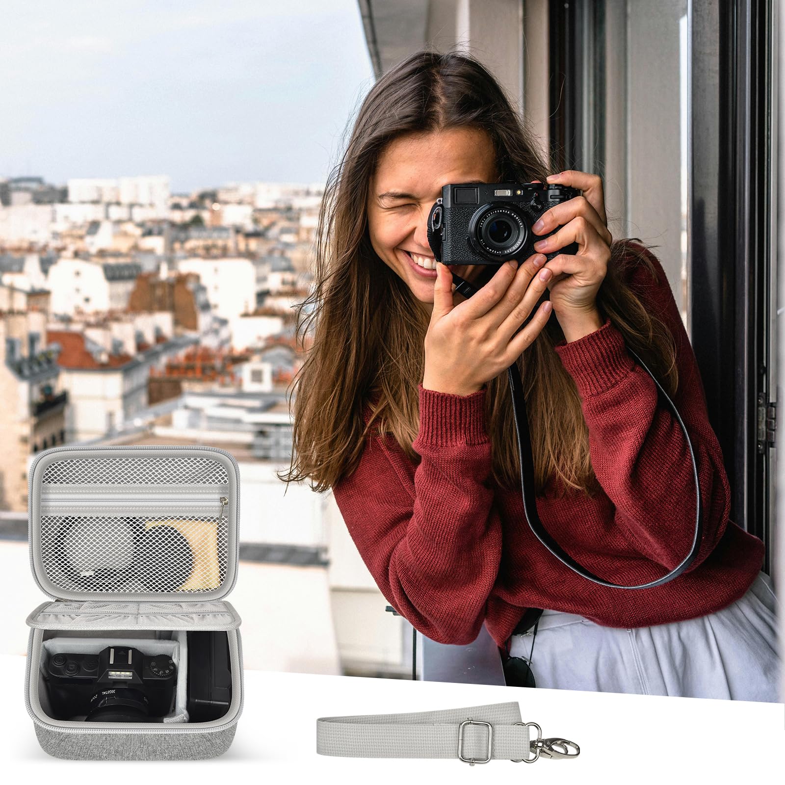 Premium material for VJIANGER digital camera for photography 4K 56MP vlogging camera: The film camera hard shell case offers excellent water-resist, dirt-resist and can withstand bumps properties, effectively protecting your point and shoot camera and lenses from external elements. Whether you're shooting in rainy conditions or navigating rough terrain, camera bag small provides comprehensive conservation, making it an ideal for outdoor photography.