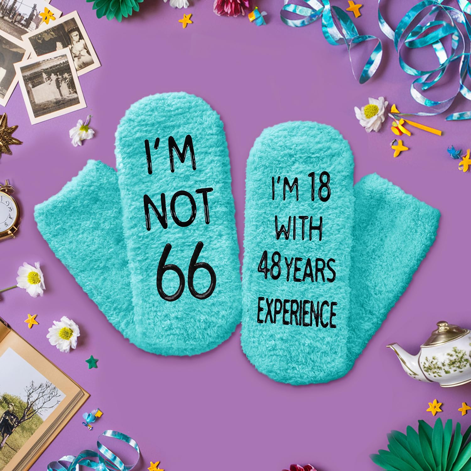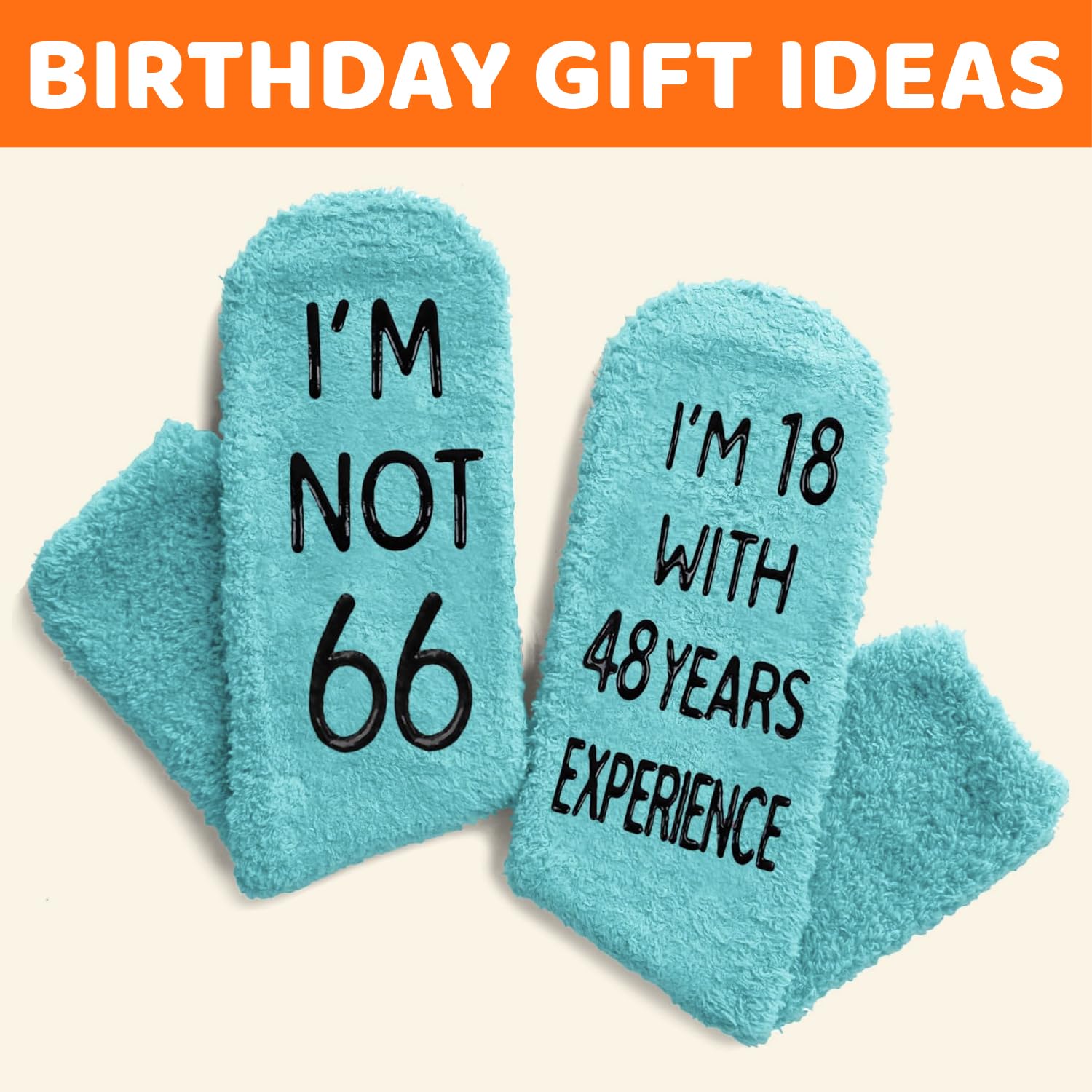 66th BIRTHDAY GIFT IDEAS: Celebrate birthday with our unique socks, humorously inscribed with "I'M NOT 66, I'M 18 WITH 48 YEARS EXPERIENCE."They make an ideal gift for Birthdays, Christmas, or White Elephant exchange.