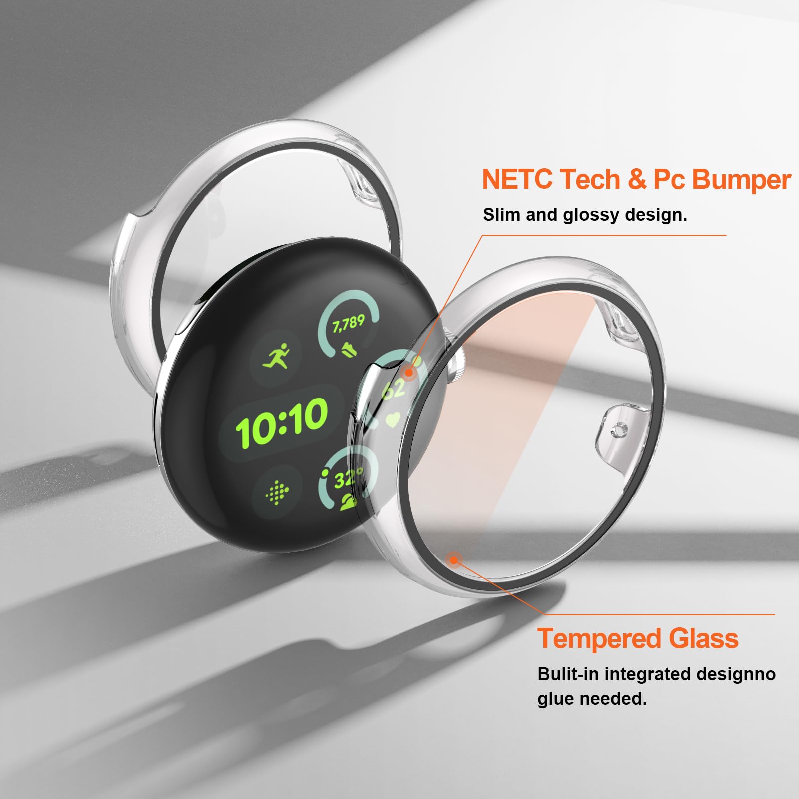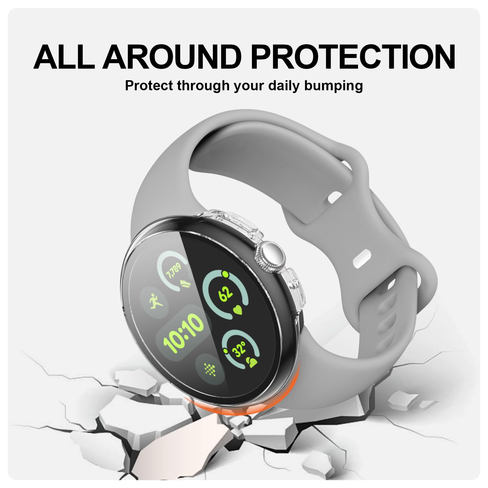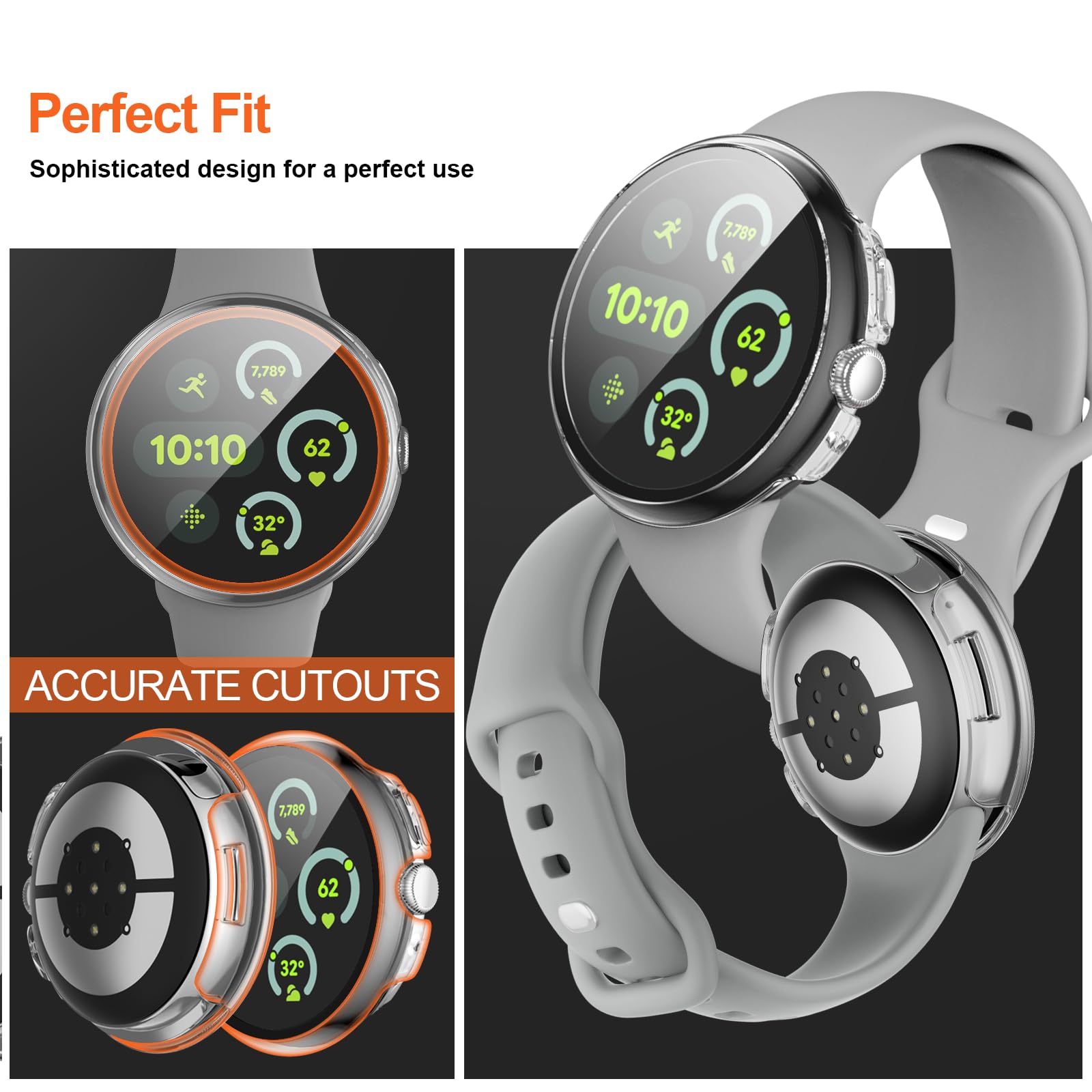 【2 In 1 Design】: Durable PC case built in slim HD clear tempered glass screen protector,all Around protects your Pixel Watch 3 from scratch, bumps and accidental drops.Super easy to install for its snap-on design,and charge directly