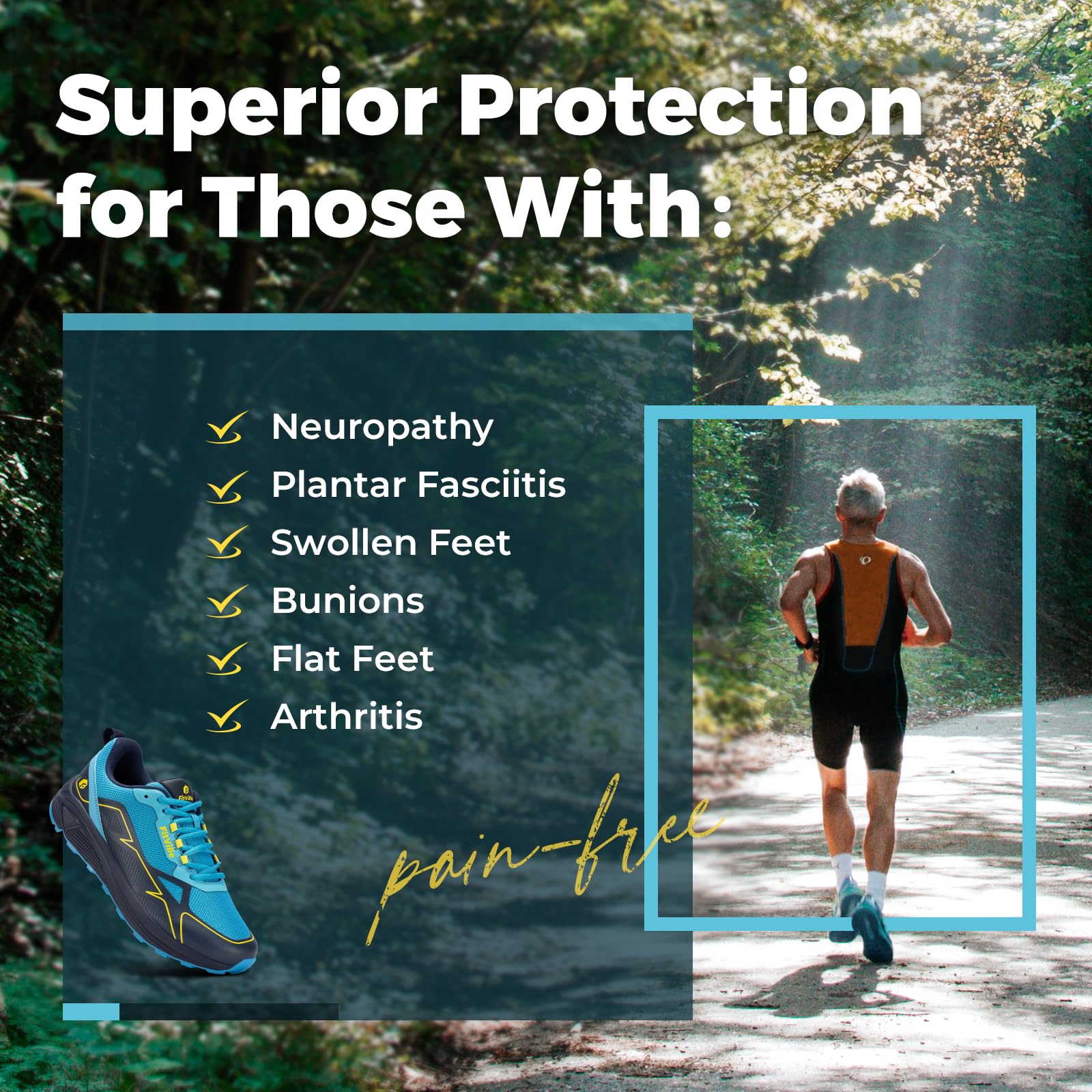 GRIP-READY OUTSOLE - FitVille's special sole keeps you steady, even on tricky surfaces. Experience top-notch traction and grip across diverse terrains for a secure and confident trail-running adventure.