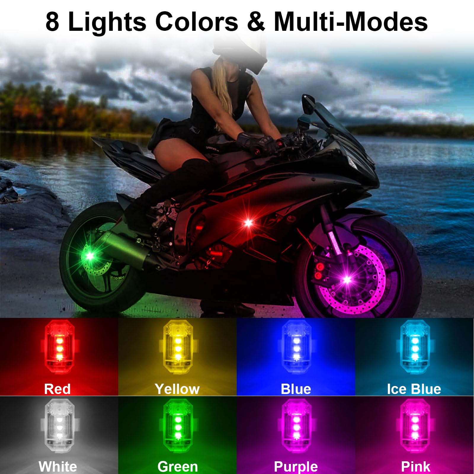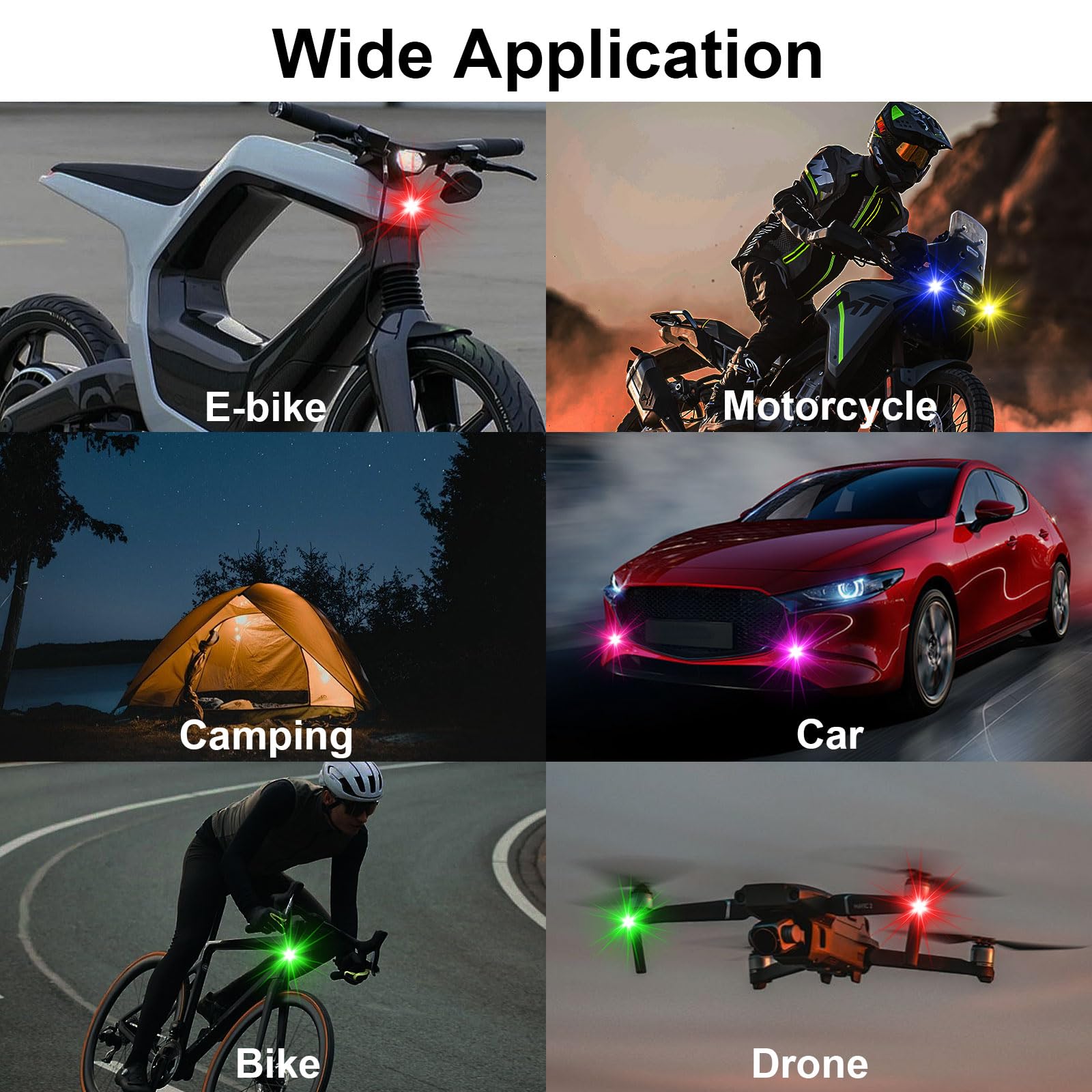 【Wide Application】These motorcycle strobe lights are suitable for a variety of vehicles such as motorcycles, trucks, drones, cars, bikes, and boats. They are perfect for various purposes like camping, emergency situations, and creating ambient lighting.