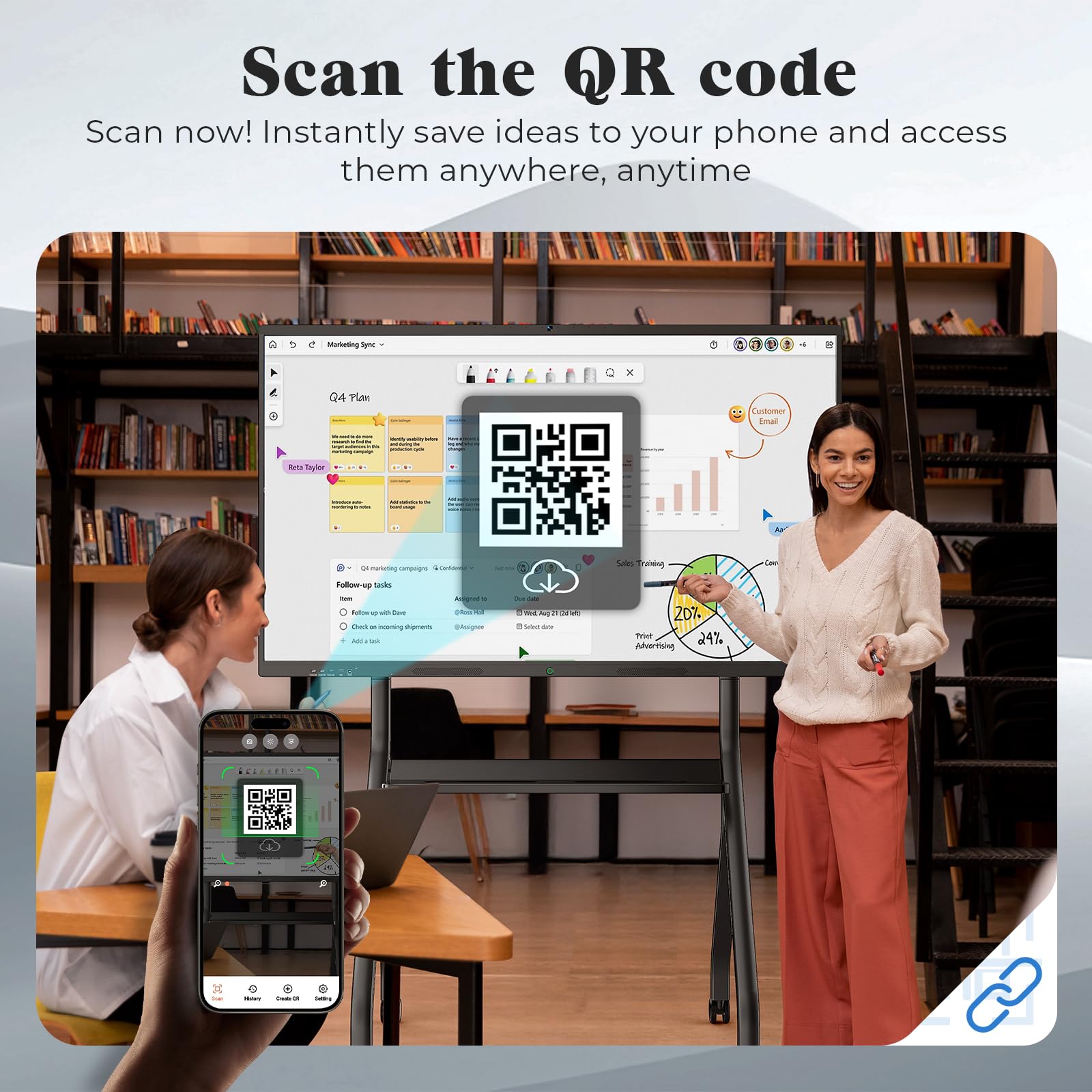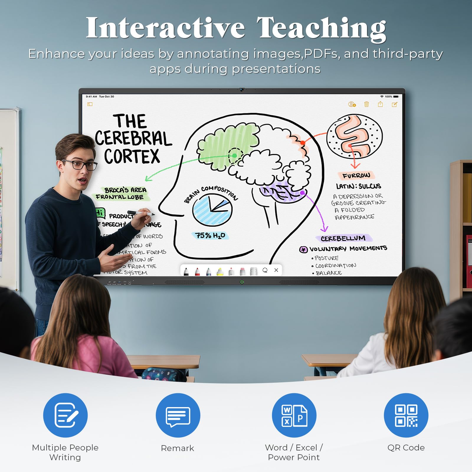 【Advanced Interactive Whiteboard】Experience smart collaboration with the 20-point infrared touch technology, offering ±1mm precision and a fast 6ms response time. Features include smart handwriting recognition, one-touch color switching, and instant cloud saving. Teachers, presenters, and teams can interact, draw, and share content effortlessly. Designed for intuitive use, this whiteboard transforms any lesson or meeting into an interactive experience.