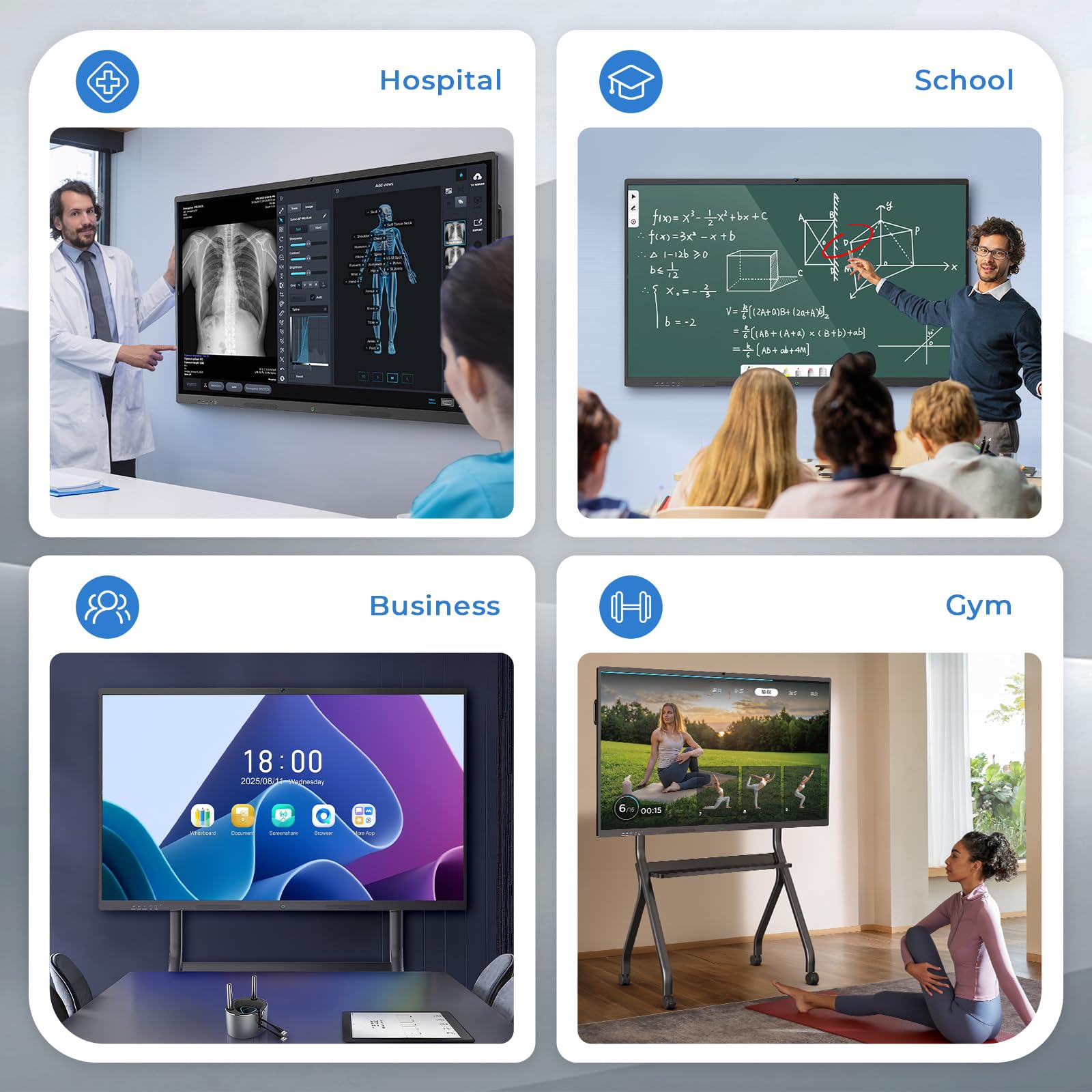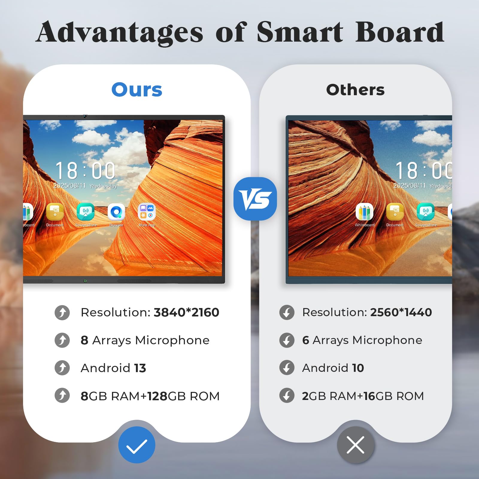 【Powerful Android 13 System】Powered by the latest Android 13 operating system, this smart board features 8GB of RAM and 128GB of internal storage, delivering a smooth, responsive experience for both educational and professional use. It supports a wide range of apps, tools, and multimedia content, ensuring seamless interaction during classes, presentations, and meetings. Whether you're teaching, training, or collaborating, it provides the speed and versatility you need.
