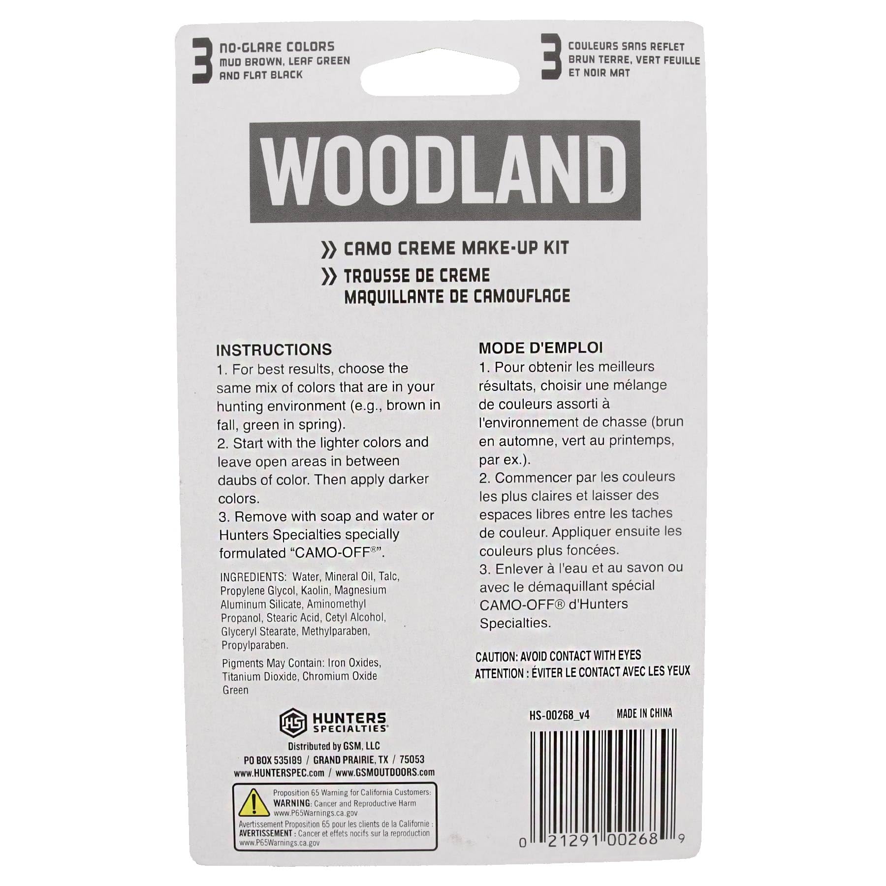 Blend into your surroundings with this easy-to-use camo face paint. The kit includes three 1 oz. tubes of creme makeup: mud brown, flat black, and leaf green, and is a great addition to your hunting gear. ABOUT HUNTERS SPECIALTIES Hunters Specialties is a renowned brand dedicated to providing high-quality hunting accessories and gear for outdoor enthusiasts. From effective game calls to scent control solutions and comfortable camo apparel, Hunters Specialties offers a diverse range of products to meet the needs of hunters worldwide.