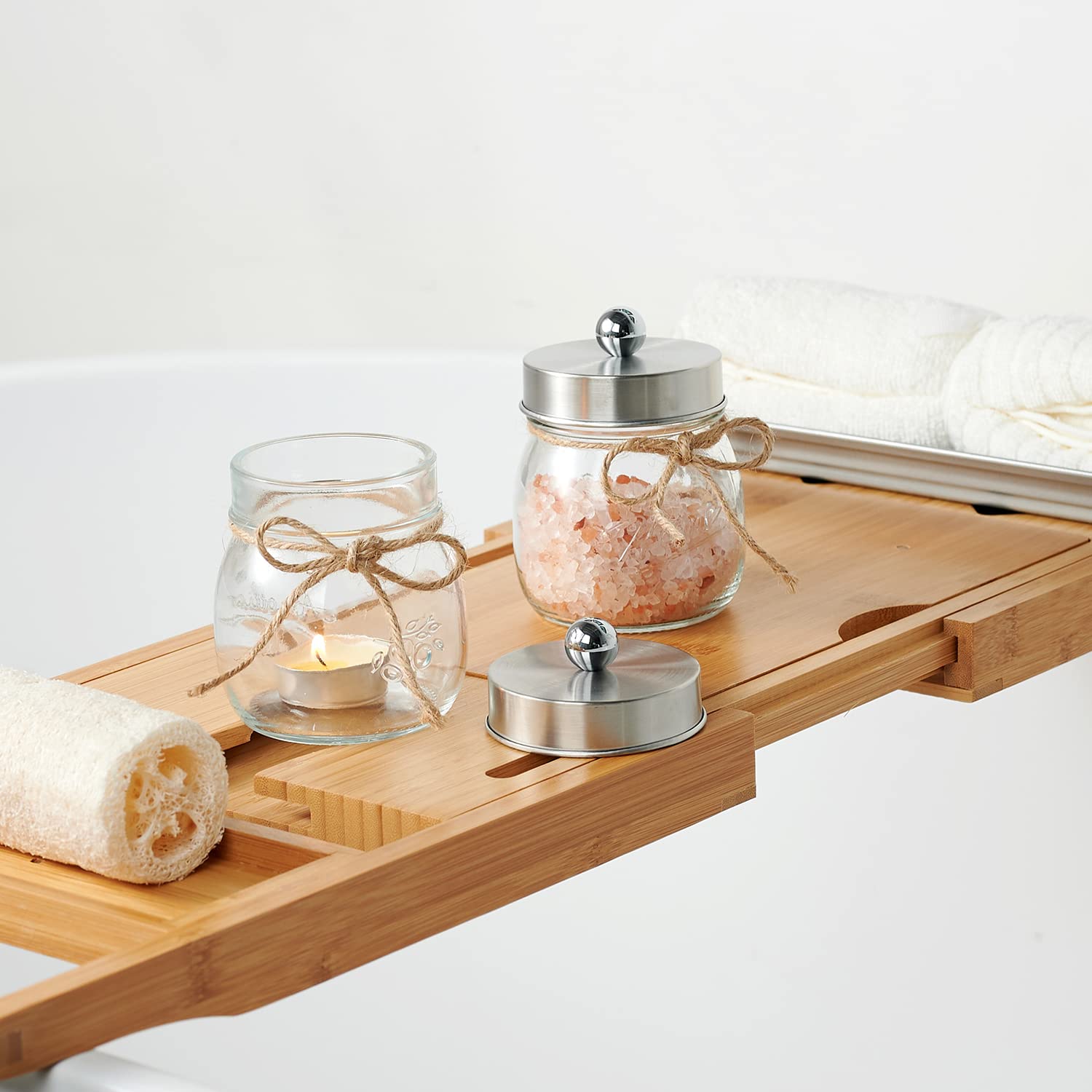 Easy to Open and Close: This bathroom set includes three 8-ounce glass mason jars with standard-size metal lids. Perfect for any bathroom and they are small enough to fit neatly and keep by the sink and not get in the way or make the counter look cluttered. These lids provide a secure fit, an easy-open design, and rust-resistant properties. Please note: the lids are designed for a lift-off mechanism rather than a screw-on closure. It makes it so much easier to lift off the top and reach in for a cotton ball or cotton swab.
