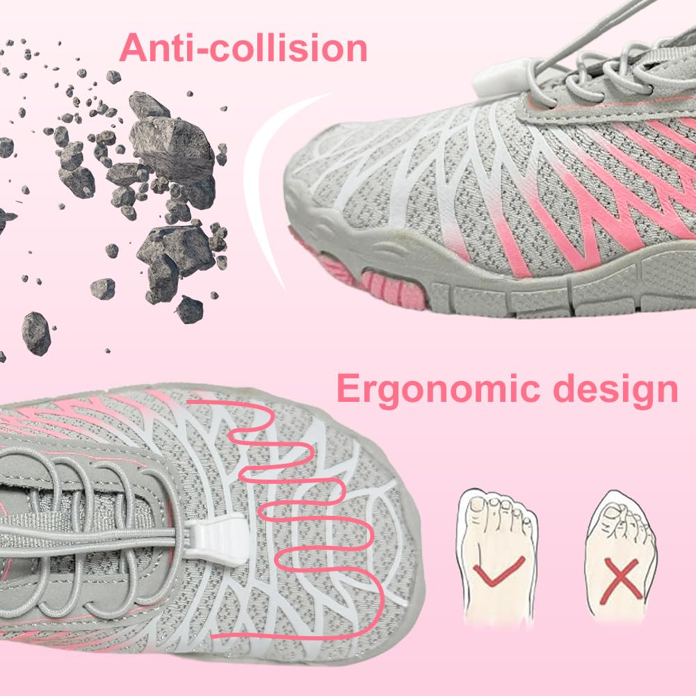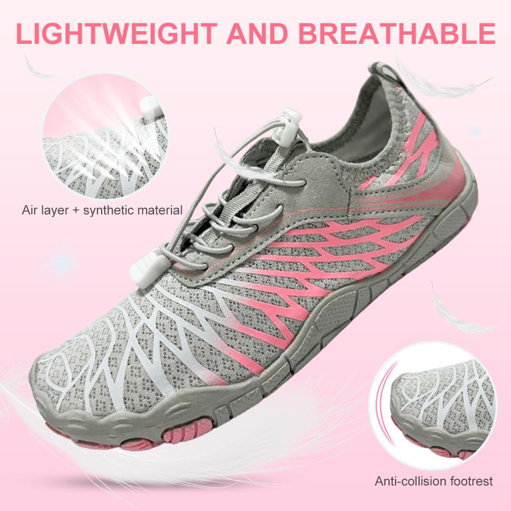 Wide Toe Box - Compared to the traditional trail running shoes, this women's barefoot shoe has a wider toe box design, which allows your toes to move and spread freely, promoting foot strength and flexibility. And this barefoot shoes has upgrade elastic drawstring allows you to quickly adjust the tightness of shoes and avoid the annoyance of tying your shoes.