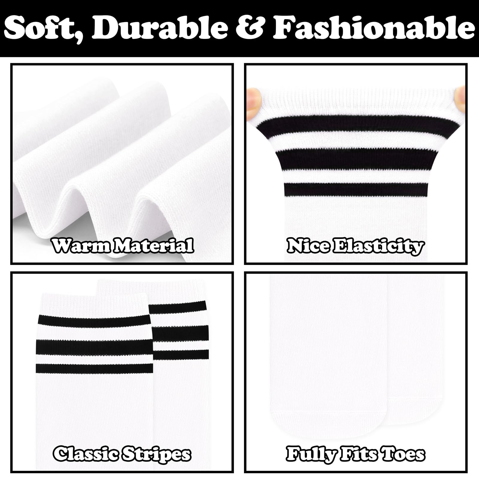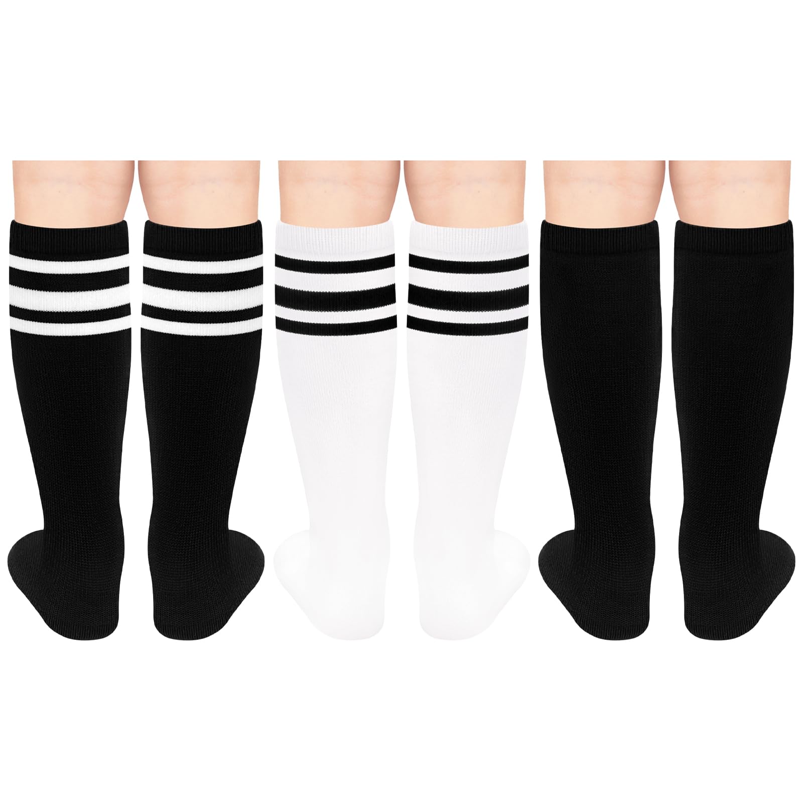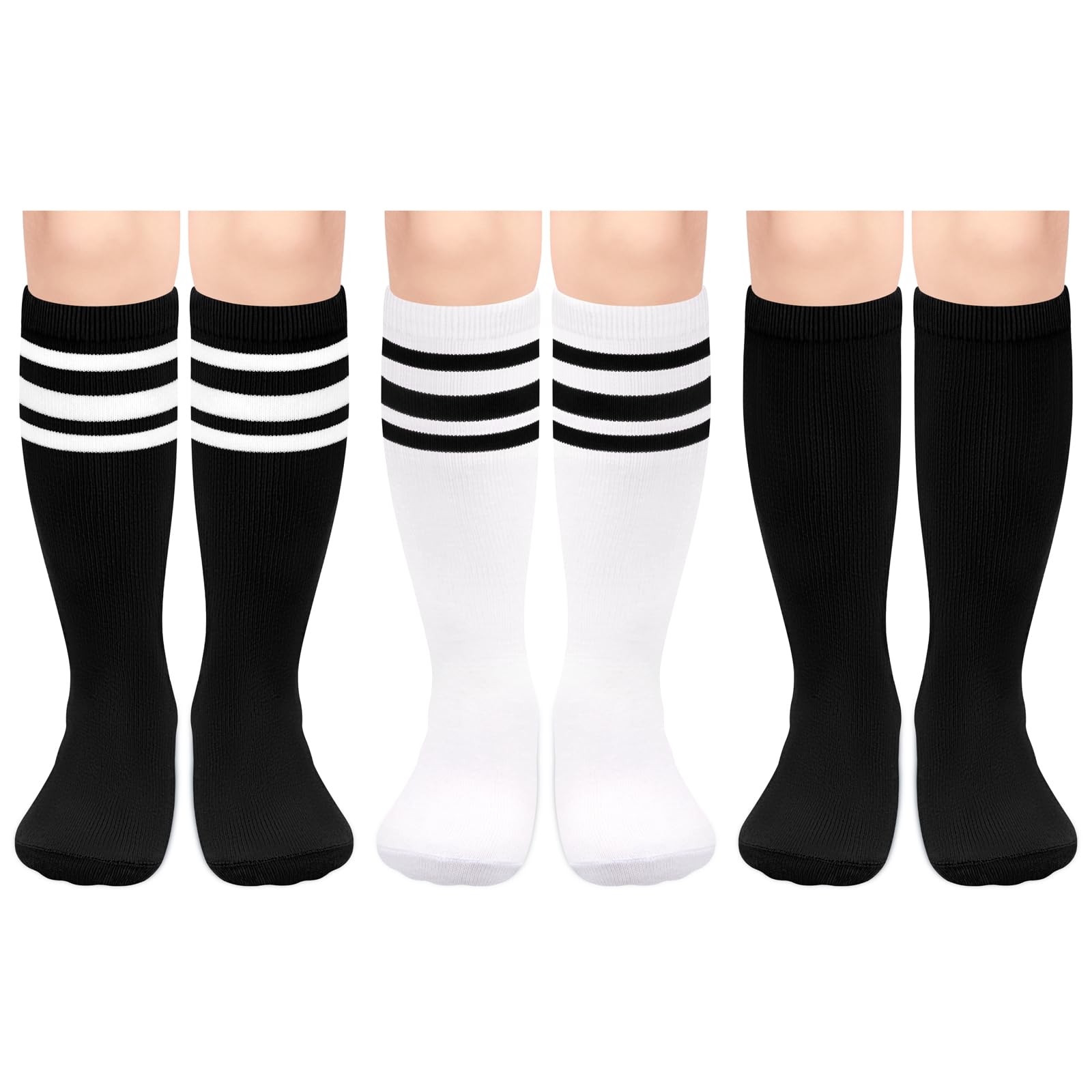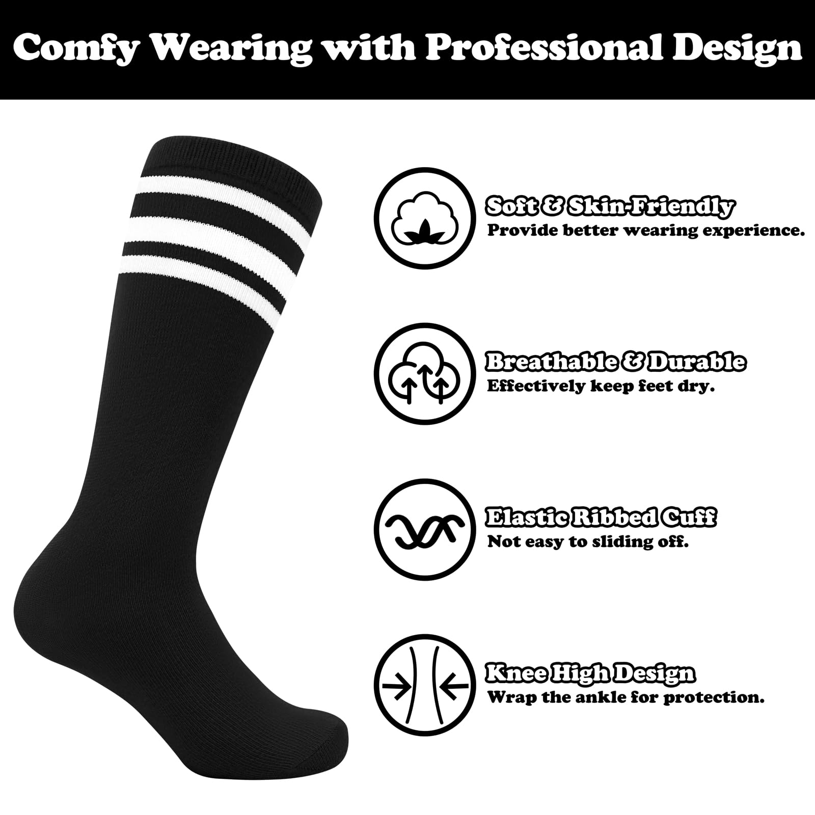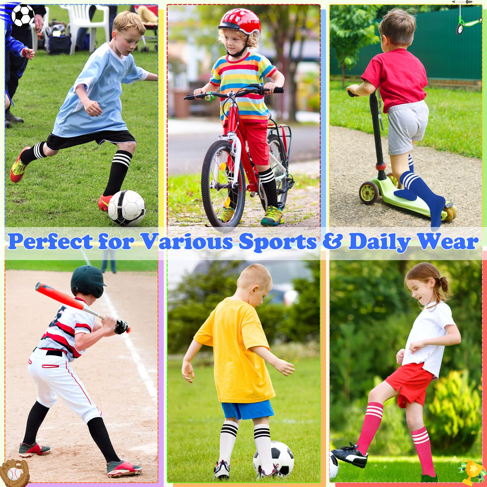 PERFECT FOR SPORTS & DAILY WEAR: Our kids football socks have moderate thickness with premium cotton, which are suitable for all seasons and can meet different daily needs. The boys baseball socks can not only be widely used for various sports such as soccer, baseball, cycling and others, but also can be used as stylish accessories to match with dresses, jeans, shorts and so on. Besides, the girls knee high socks are also suitable for special outfits on Halloween, Christmas and other festivals.