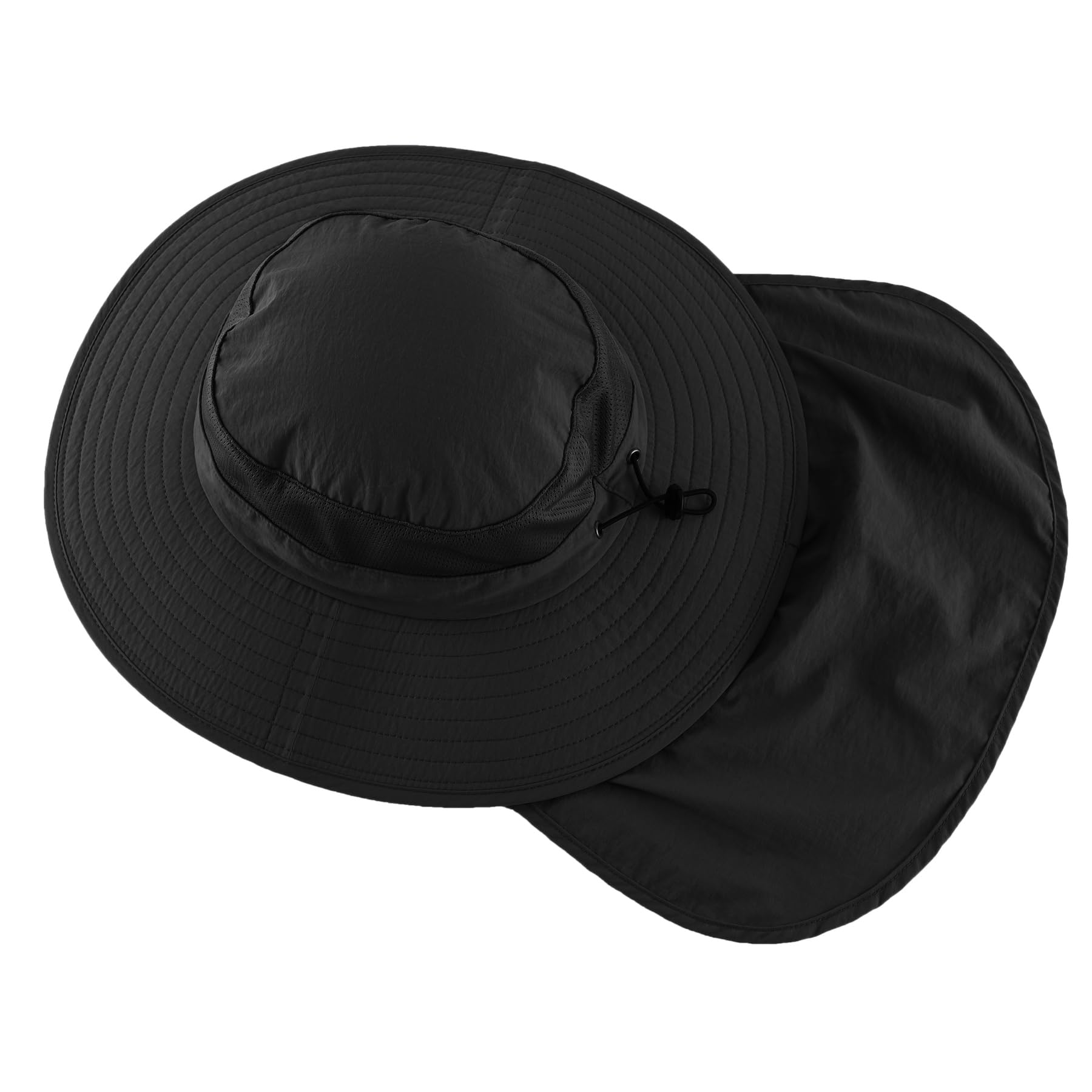 The long neck flap protect your neck from sunburn and the neck flap can be stowable as a bucket hat