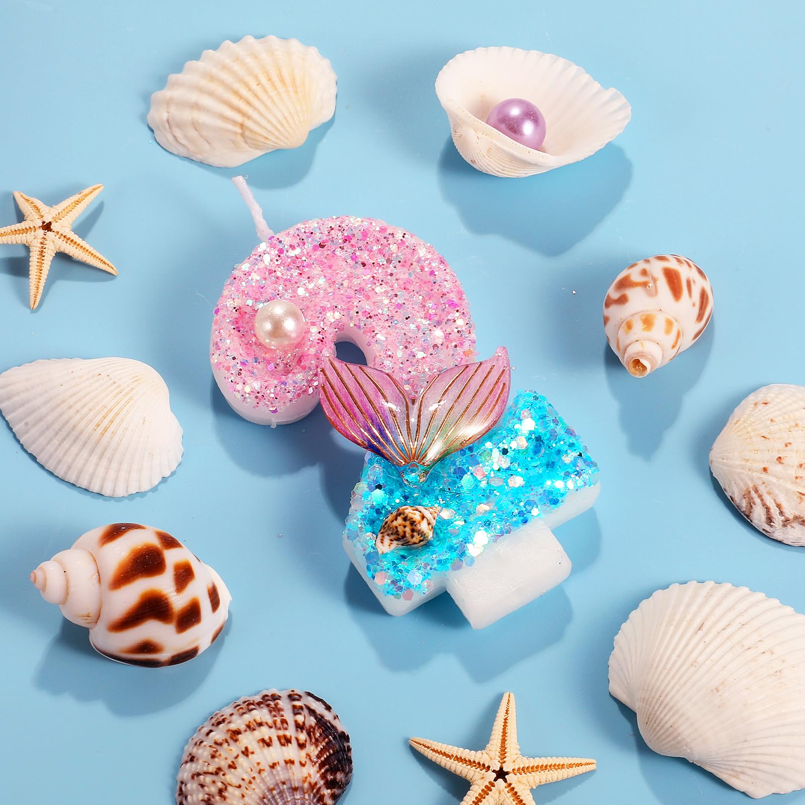 Magical Mermaid Design – Make a splash with these stunning number candles, adorned with shimmering pink & blue glitter, delicate fishtails, and conch shell accents! Perfect for mermaid-themed parties, ocean celebrations, or anyone who loves a touch of underwater fantasy.
