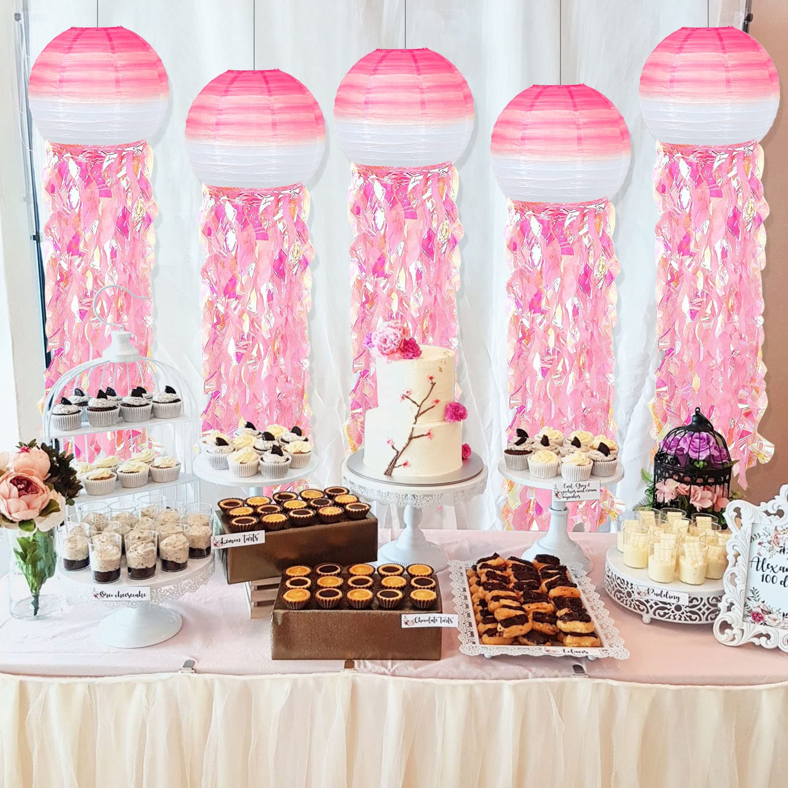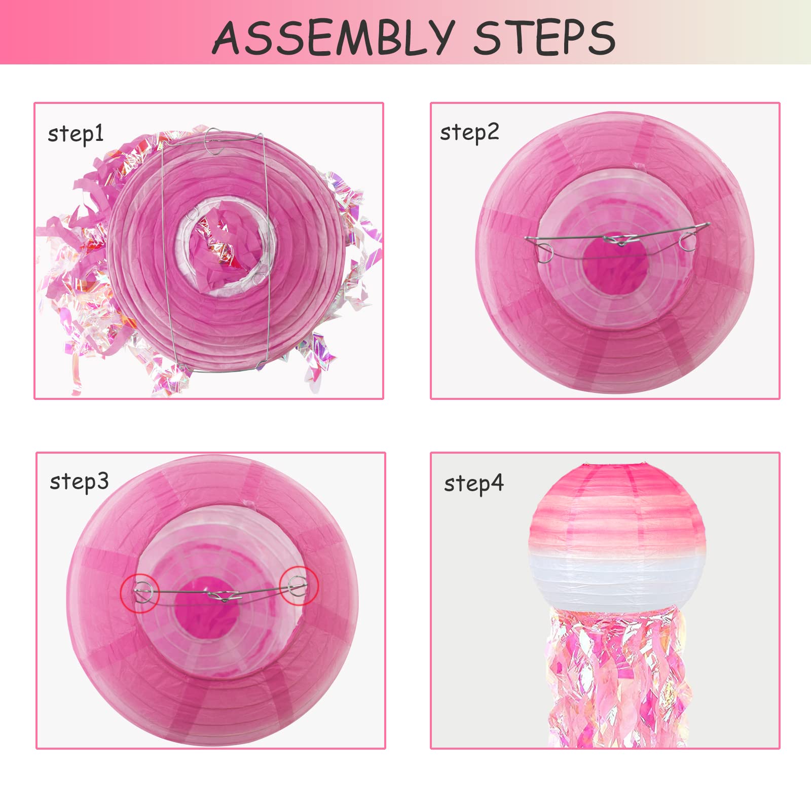 Paper Lanterns Sets Content - Gradient colorful pink jelly fish paper lanterns sets come with 5pcs paper lanterns to hang up in your party. Diameter of lantern 10 inches. These colorful paper lanterns give you a wide variety of backgrounds for a variety of themed weddings and parties.
