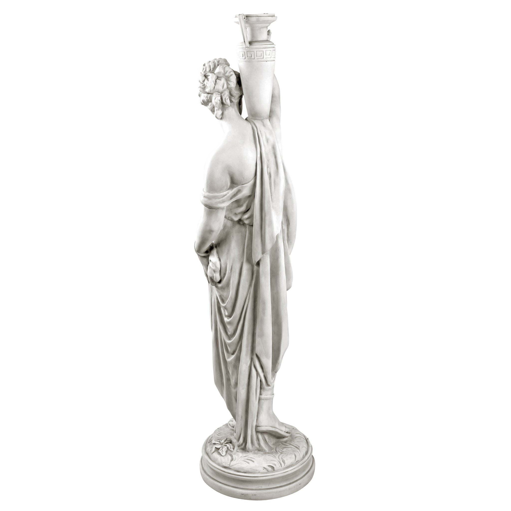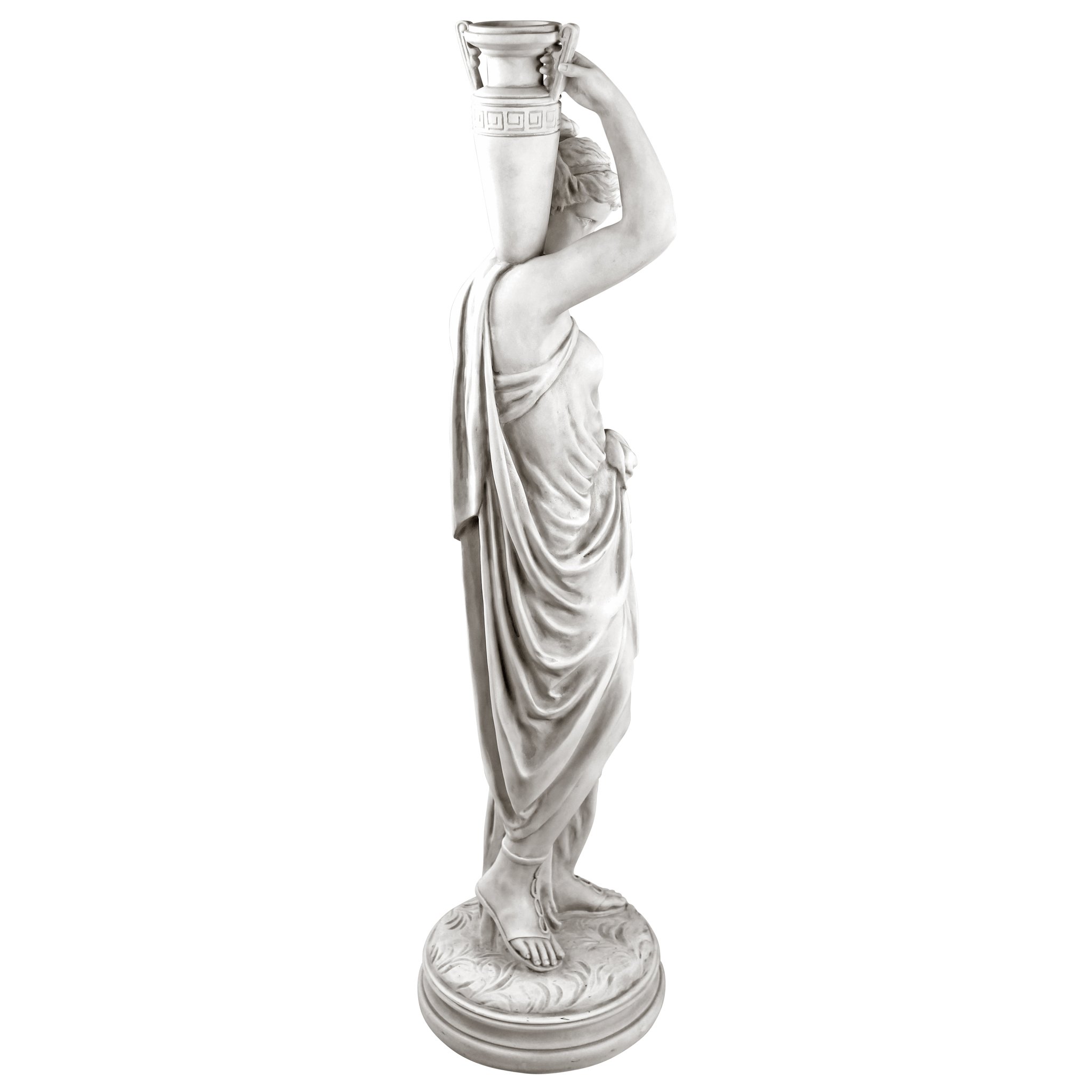This grand 19th century Roman replica sculpture of the perfect human form carries her Grecian urn in an elegant serpentine pose with classical details and round pedestal base.