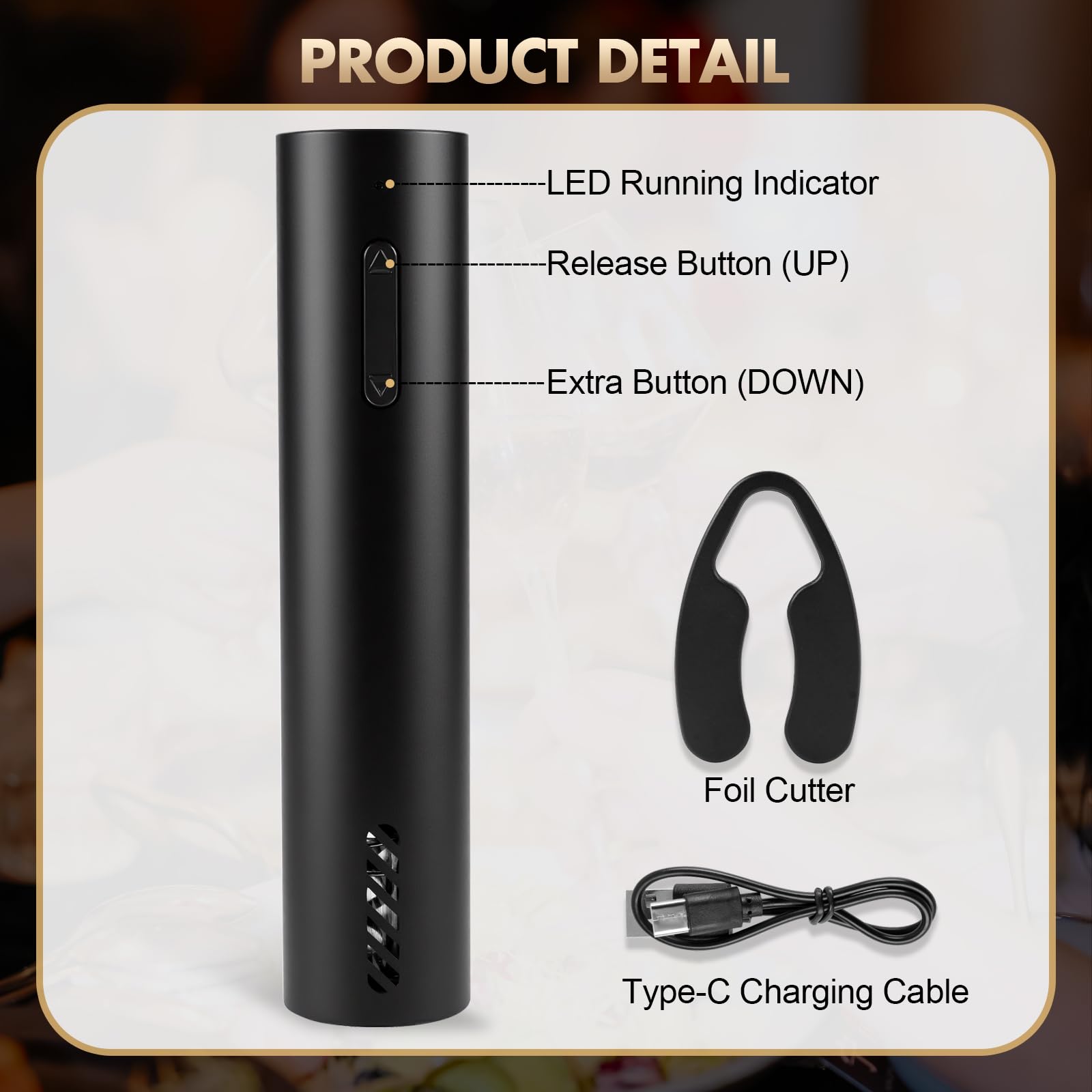 Ideal Gift Choice: The elegant appearance and practical function make the wine opener electric rechargeable an excellent present. The electric bottle opener, paired with a foil cutter, is ideal for weddings, parties, anniversaries, bars, or daily home use. Among all electric wine openers options, it stands out as a thoughtful and stylish gift