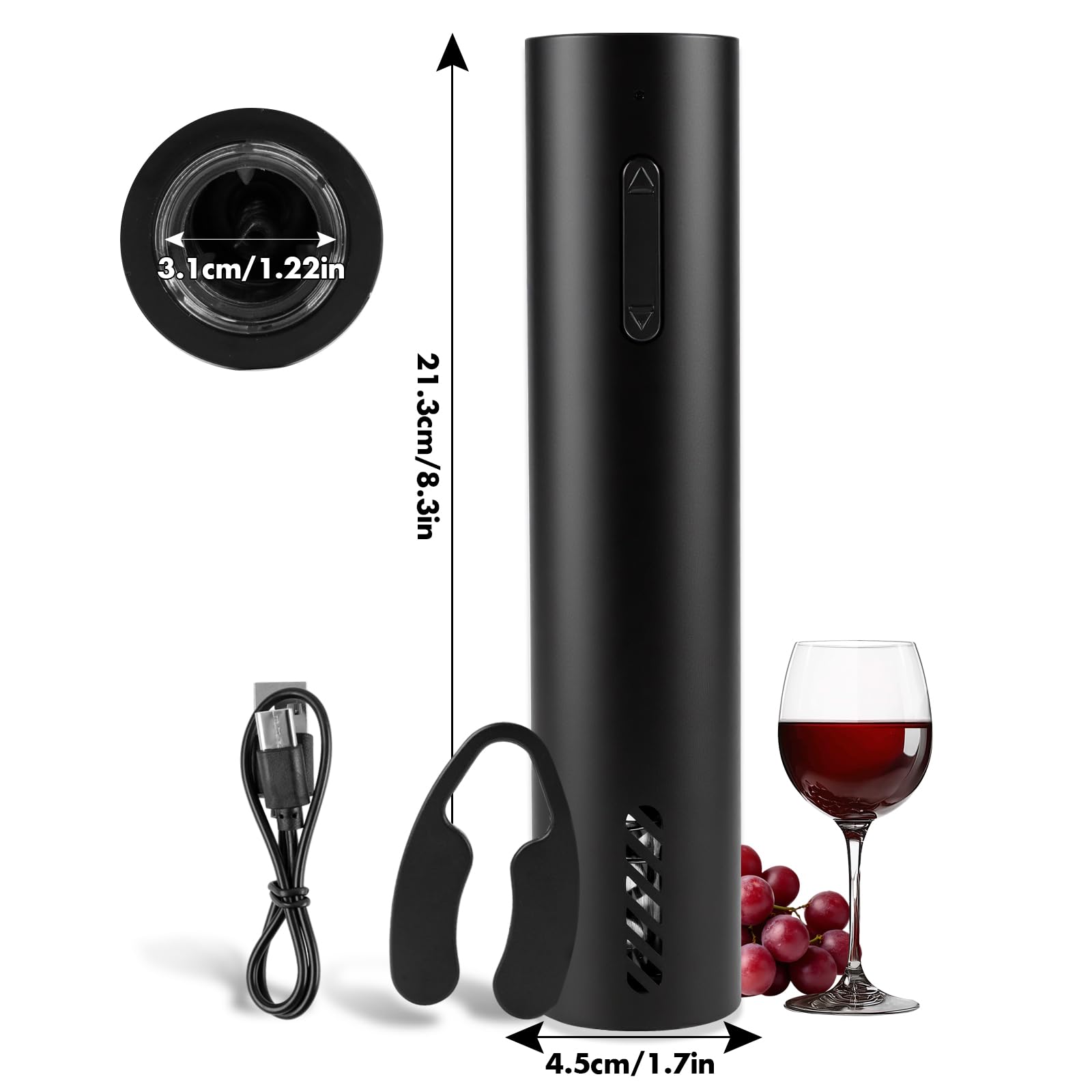 Lightweight & Portable Size: Compact yet powerful, the model ranks among the most practical rechargeable wine bottle opener. Measuring 9''H × 1.8''W and weighing only 210g, the rechargeable wine opener is easy to hold, store, and carry. A versatile electronic wine bottle opener that lets you enjoy wine anytime, anywhere