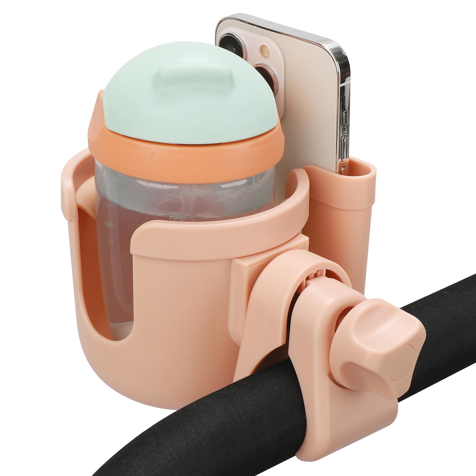 The clamp designed with rubber pad, it helps lock the cup holder onto the bar without movement. The clamp can also rotate 360 degrees, and it is adjustable to fit different size handle which diameter is 0.55-1.7 in / 1.4 cm- 4.5 cm.