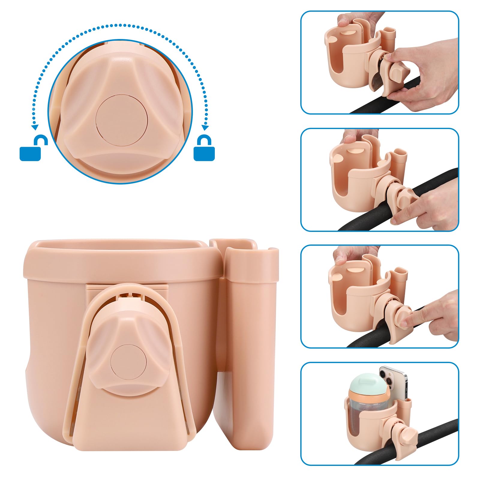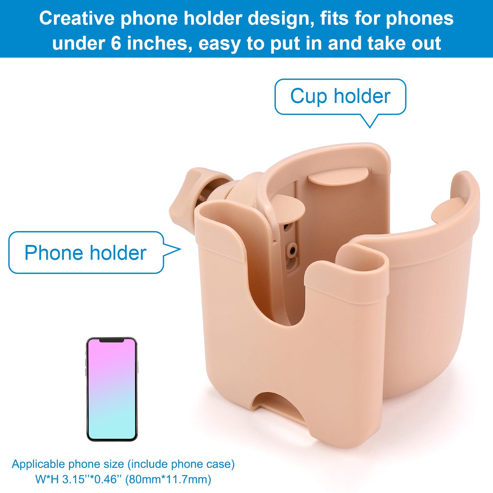 2-in-1 Walker Cup Holder: This cup holder can be used to hold bottle and cell phone at the same time. Install it on a wheelchair or walker, you can drink some water when thirsty. Or see new messages, incoming calls in the first time.