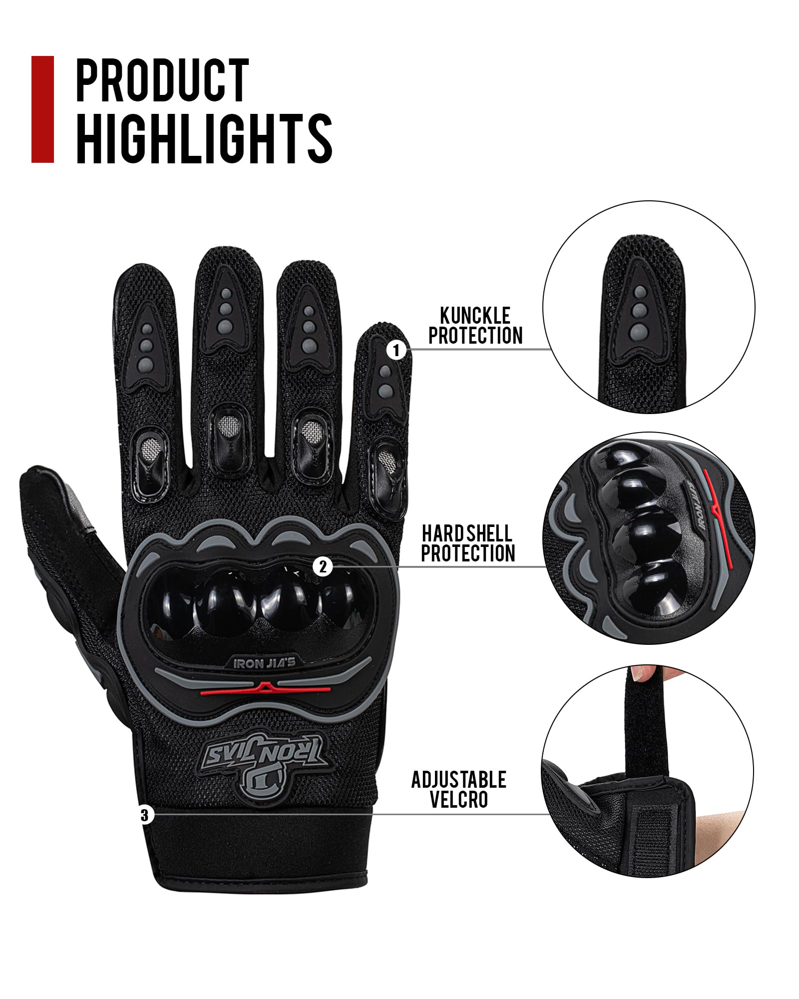 Suede protection between the thumb and the index finger , reduces the wear between the gloves and motorcycle ,also increased handle grip .