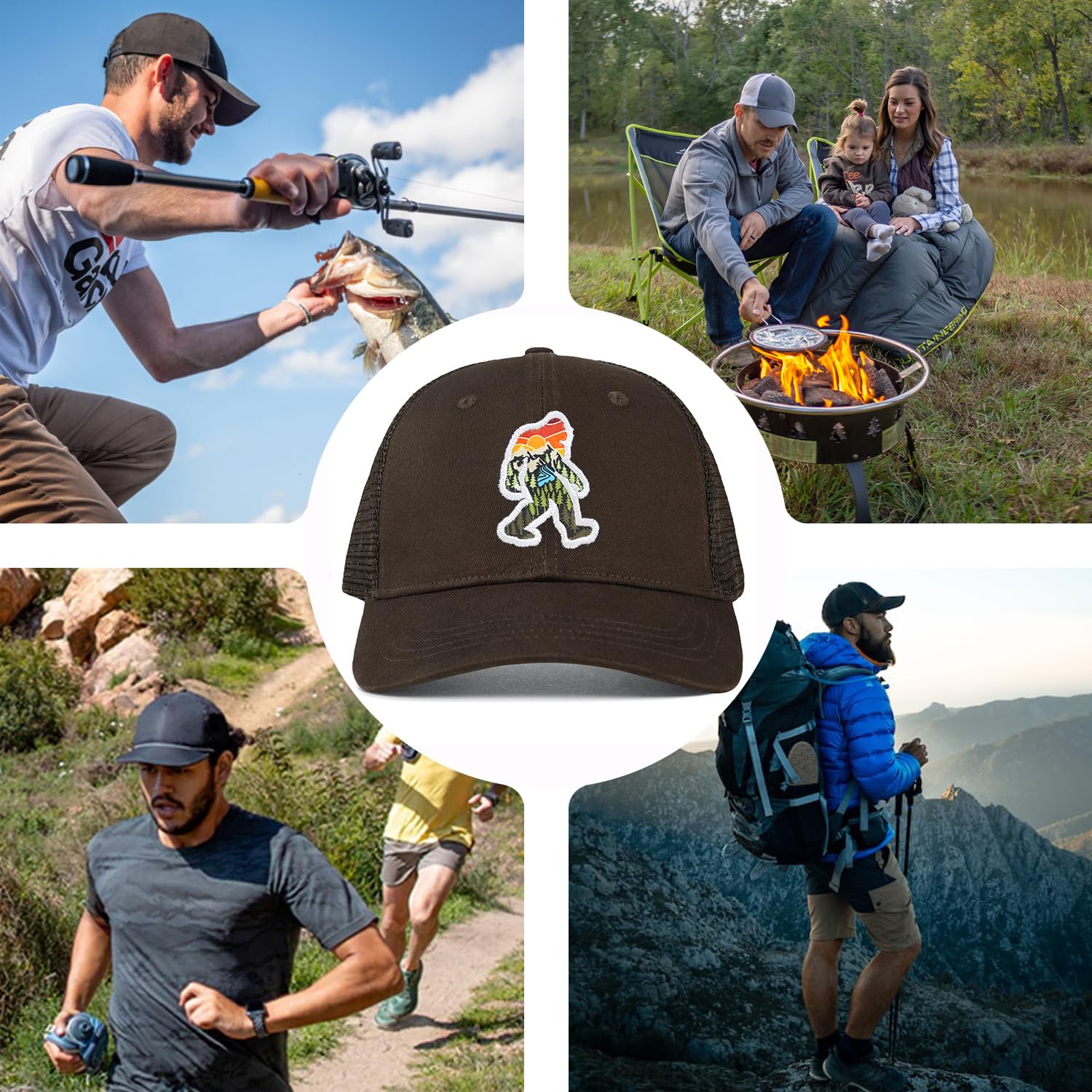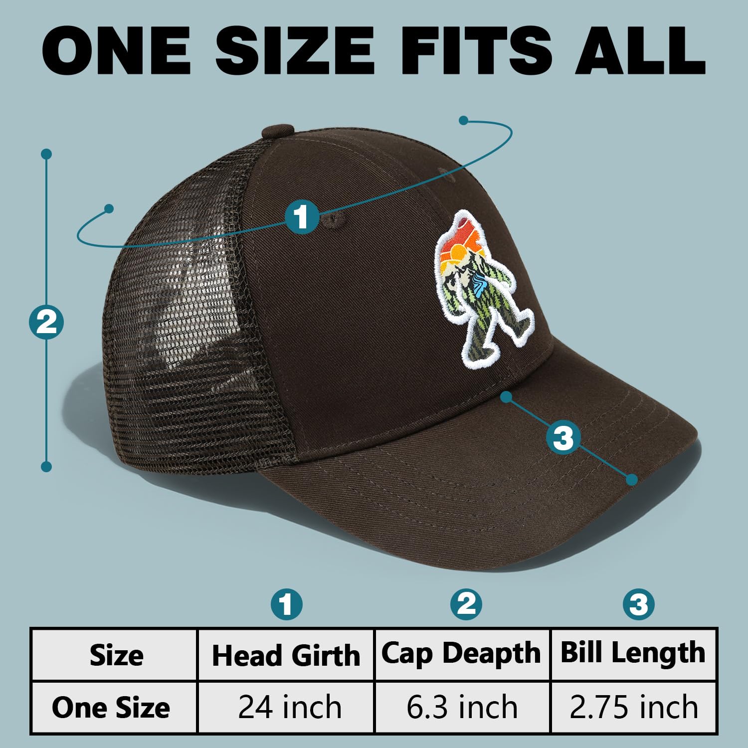 Breathable Mesh Back&Soft Sweatband: The mesh back of our Sasquatch hat is designed for breathability and comfort, making the Bigfoot hat perfect for long hours of wear. The Sasquatch hat's soft cotton sweatband feels great against your skin and allows for easy movement. This essential accessory prevents sweat from dripping into your eyes when outdoors.