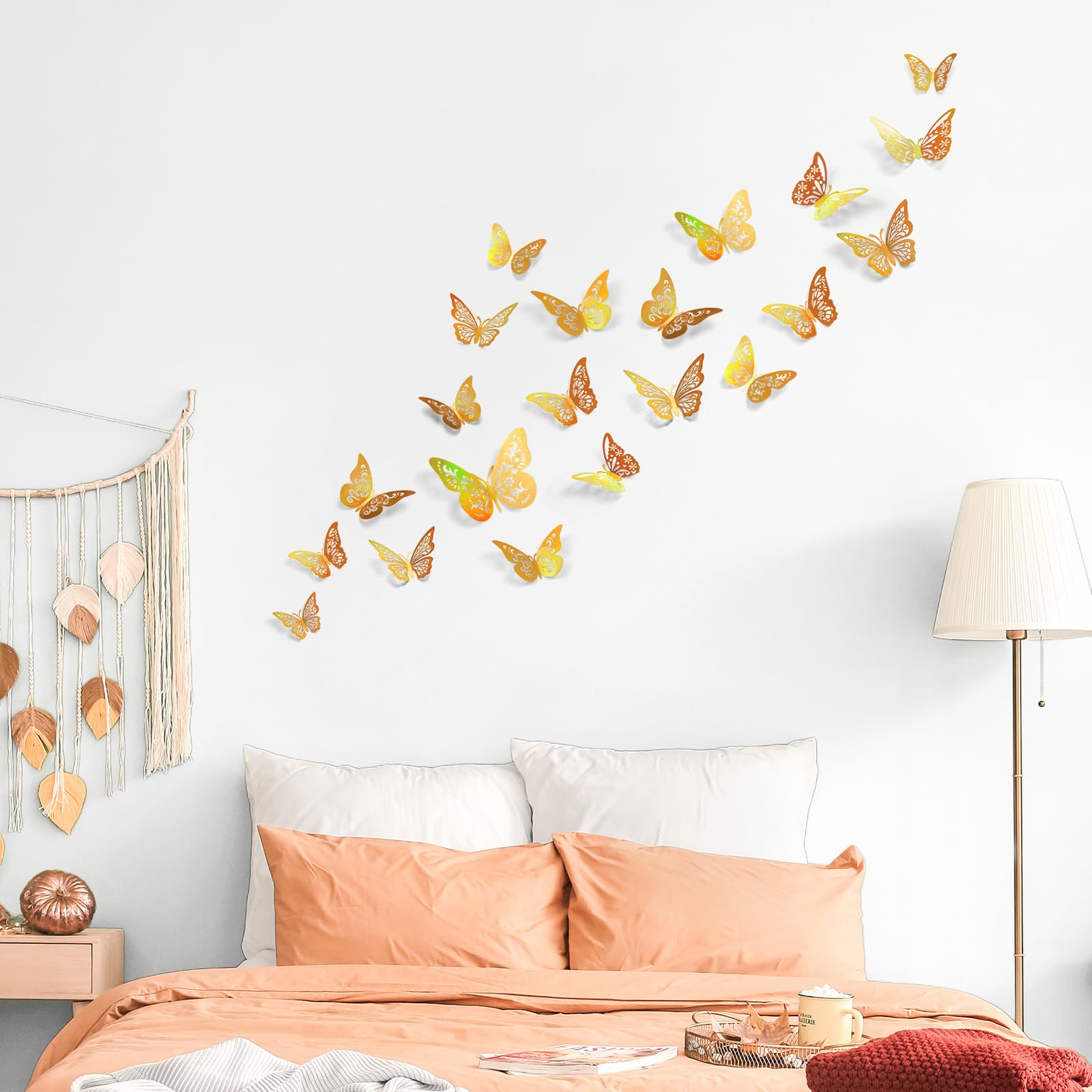 Excellent Adhesiveness and Removability - The paper butterfly decoration uses high-quality double-sided adhesive. They is so sticky and sturdy that you don’t need to worry about them falling off from the walls or other attached surfaces. The glue is removable and has no damage or sticky residue.