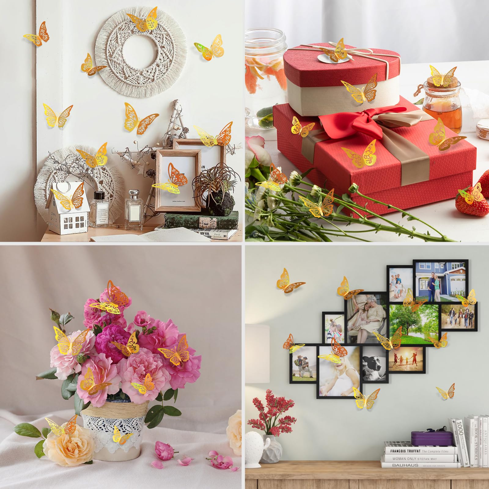 Shiny Gorgeous Hollow Carved Design - The butterfly decorations are made of shiny paper material, making the butterfly wall decals look very beautiful and elegant. You can fold the butterfly wings to create a 3D effect and create the shape you desire.