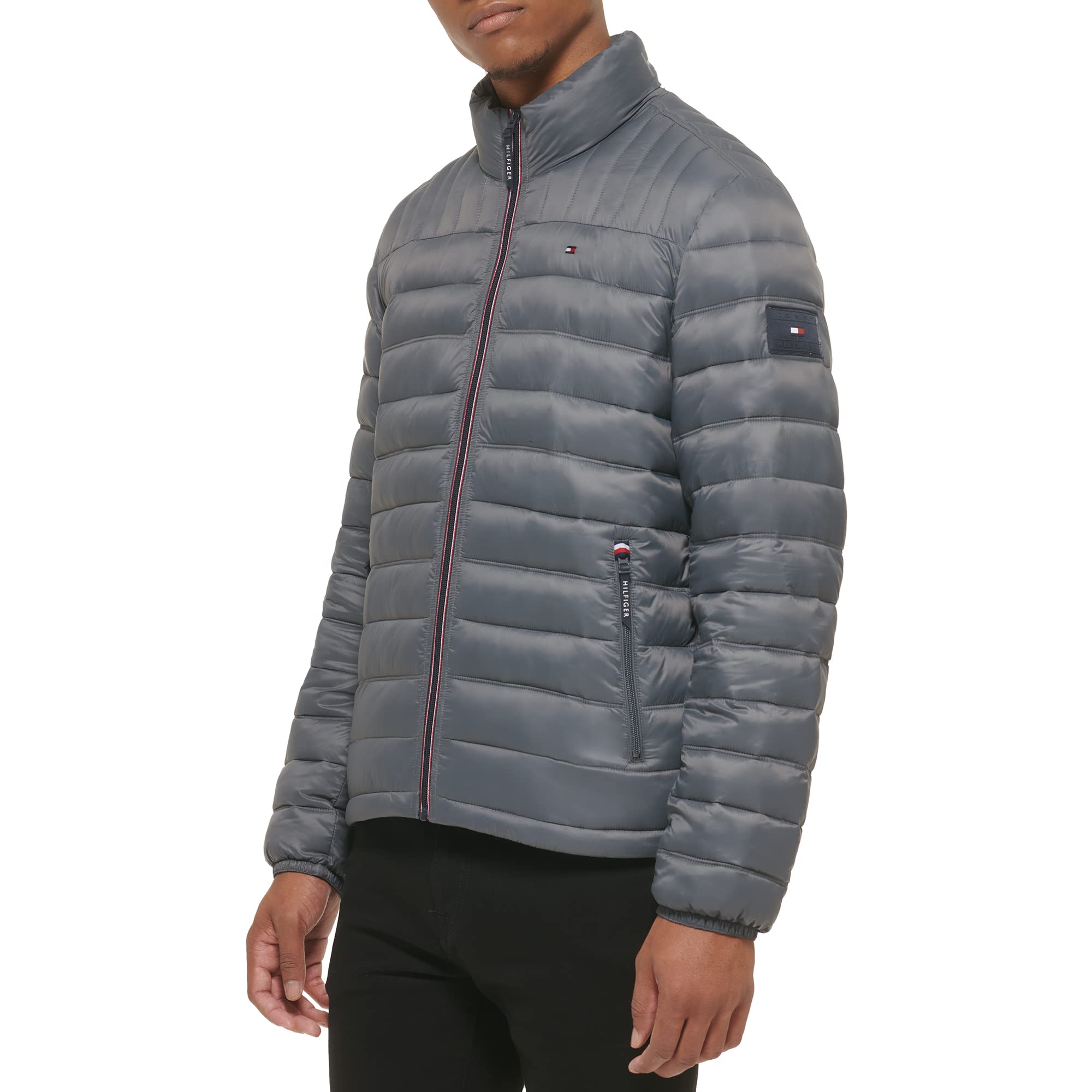 Description Logo packable in nylon with nylon lining, ultra loft fill, center front zipper closure, stand collar, Hilfiger on back of collar, drawstring at hem, elastic cuffs, and how to pack screen-print on interior lining, and two lower welt pockets.