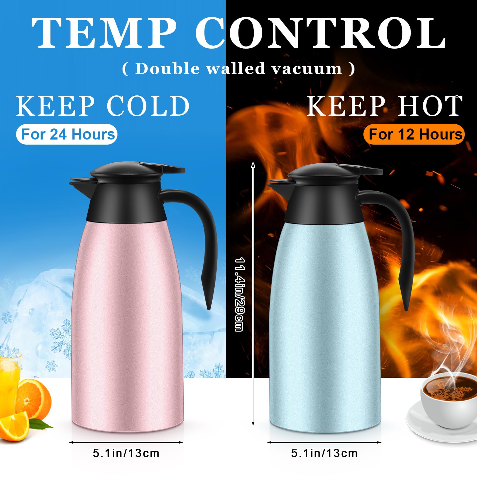 Thermal and Practical: the stainless steel coffee carafe features double walled vacuum insulation designs, and can keep your drinks hot for up to 12 hours and cold for up to 24 hours, and the lids can help to better keep the proper temperature, allowing you to enjoy them easily