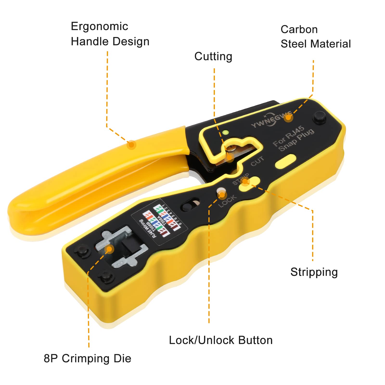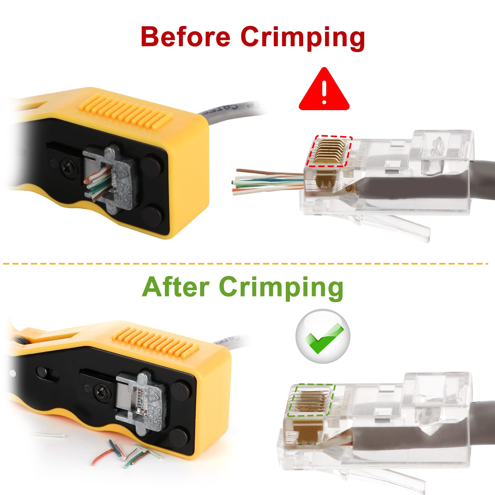 Long Lasting for Use: Pass through crimper is made of professional-grade heavy-duty steel so it delivers exceptional torque without bending. It is more durable. Black oxide finish resists rust and corrosion, making our pass thru crimpers an outstanding electronics networks tools for cuts and strips wires