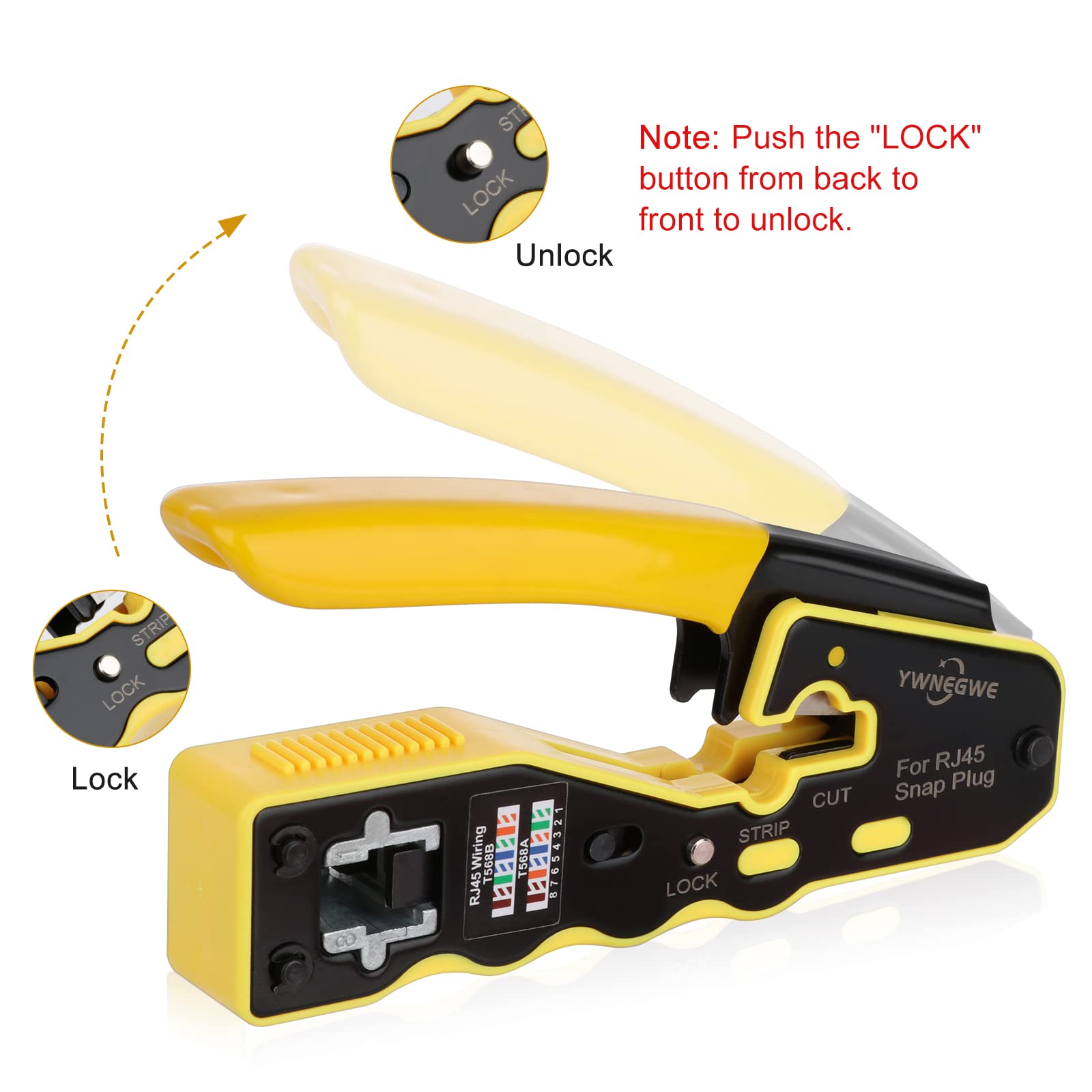 Professional Combo RJ45 Crimp Toolkit: YWNEGWE Ethernet crimp tool kit includes 1 x RJ45 Crimp Tool Passthrough, 2 x Replacement Blades, 20 x CAT6 Pass Through Connectors, 20 x Connector Covers, 100 x 6 Inch Nylon Cable Ties, 1 x Mini Wire Stripper Punchdown Tool, 1 x RJ45 Network Cable Tester (9V Battery Not Included) and 1 x User Manual