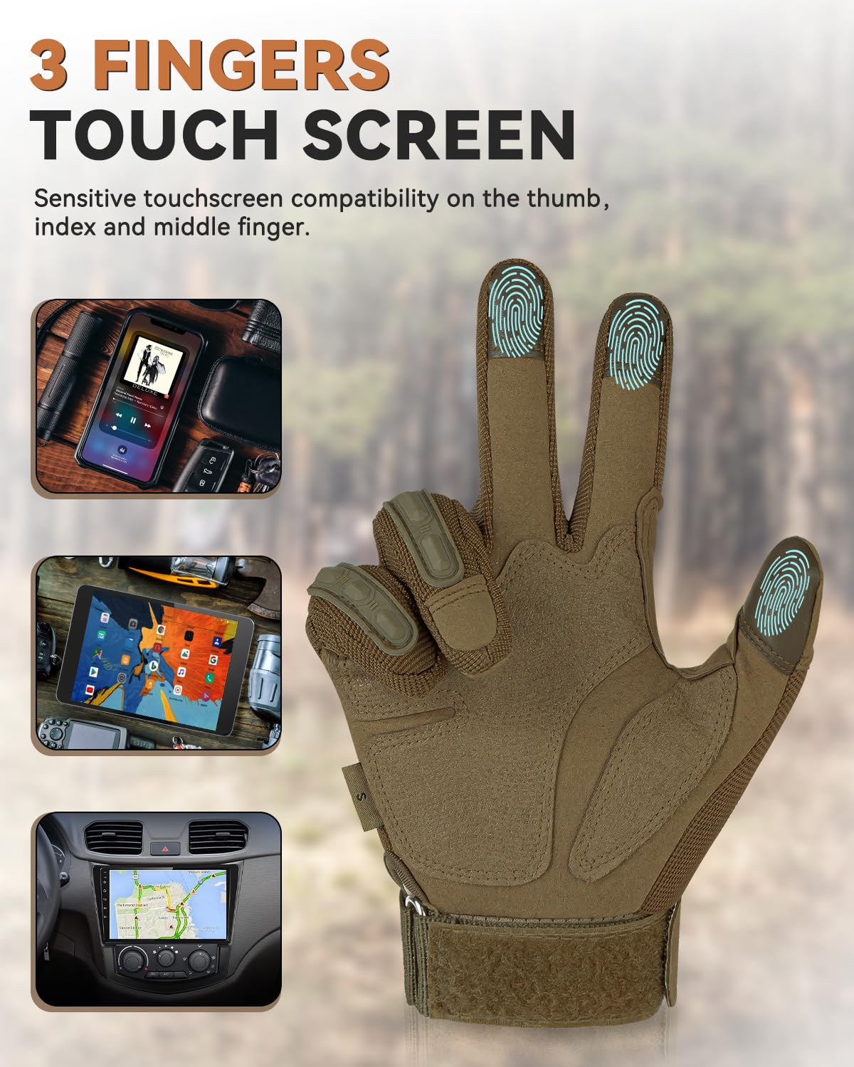 Hands PROTECTION: Engineered with protective cushion on the back of hands and fingers, the hunting gloves effectively safeguard your hands from potential scrapes and impacts. Suitable for various outdoor activities such as airsoft, paintball, ATV riding, hunting, shooting, motorcycle riding, camping, and also serve as dependable work gloves.