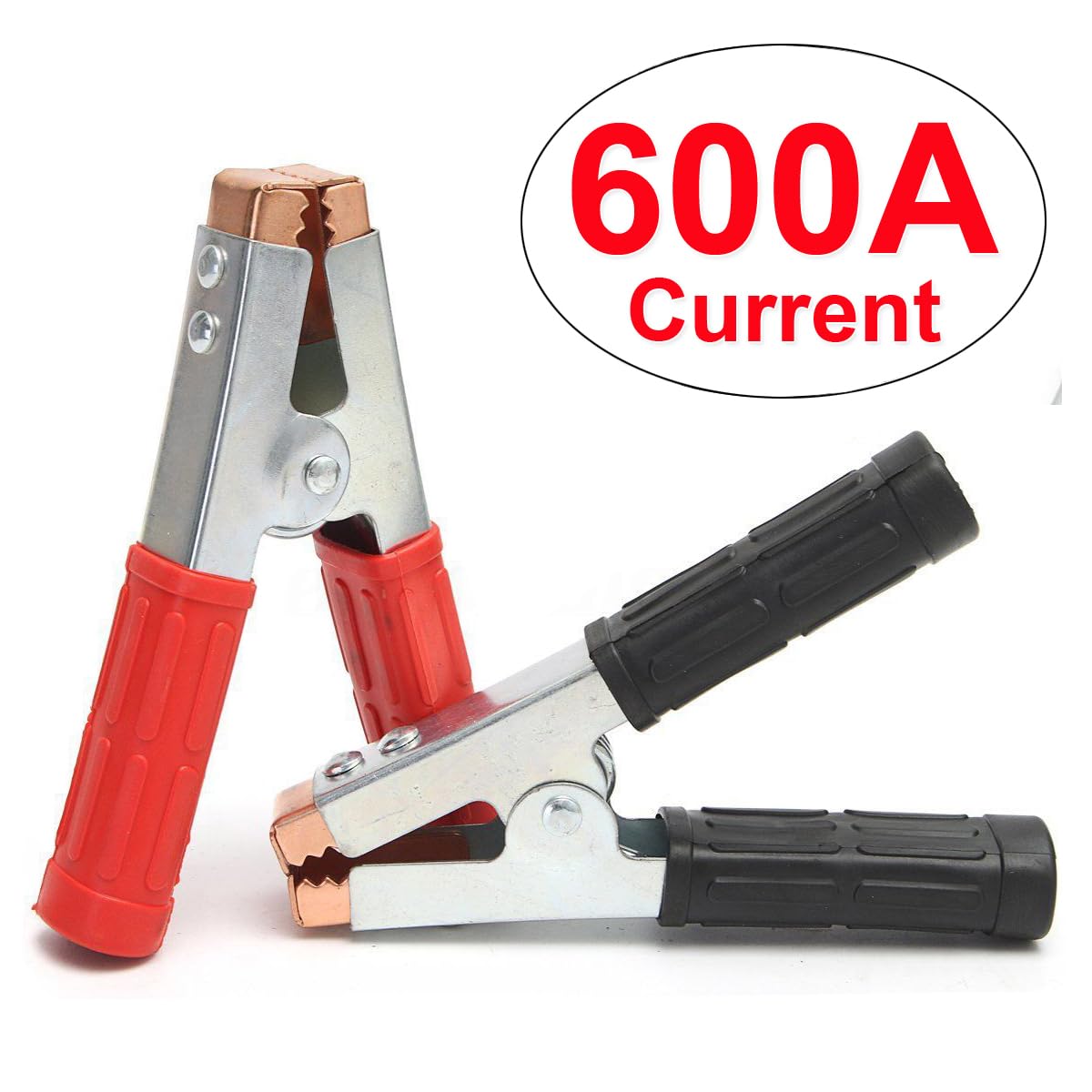 100% brand new and high quality 1Pcs red & 1pcs black car battery test alligator clamps clips. Durable and strong. Easy to operate. Material: Synthetic Copper Red and black shell for distinguishing positive and negative pole Color: red and black Rating current: 600A Package included: 2x Car battery clips