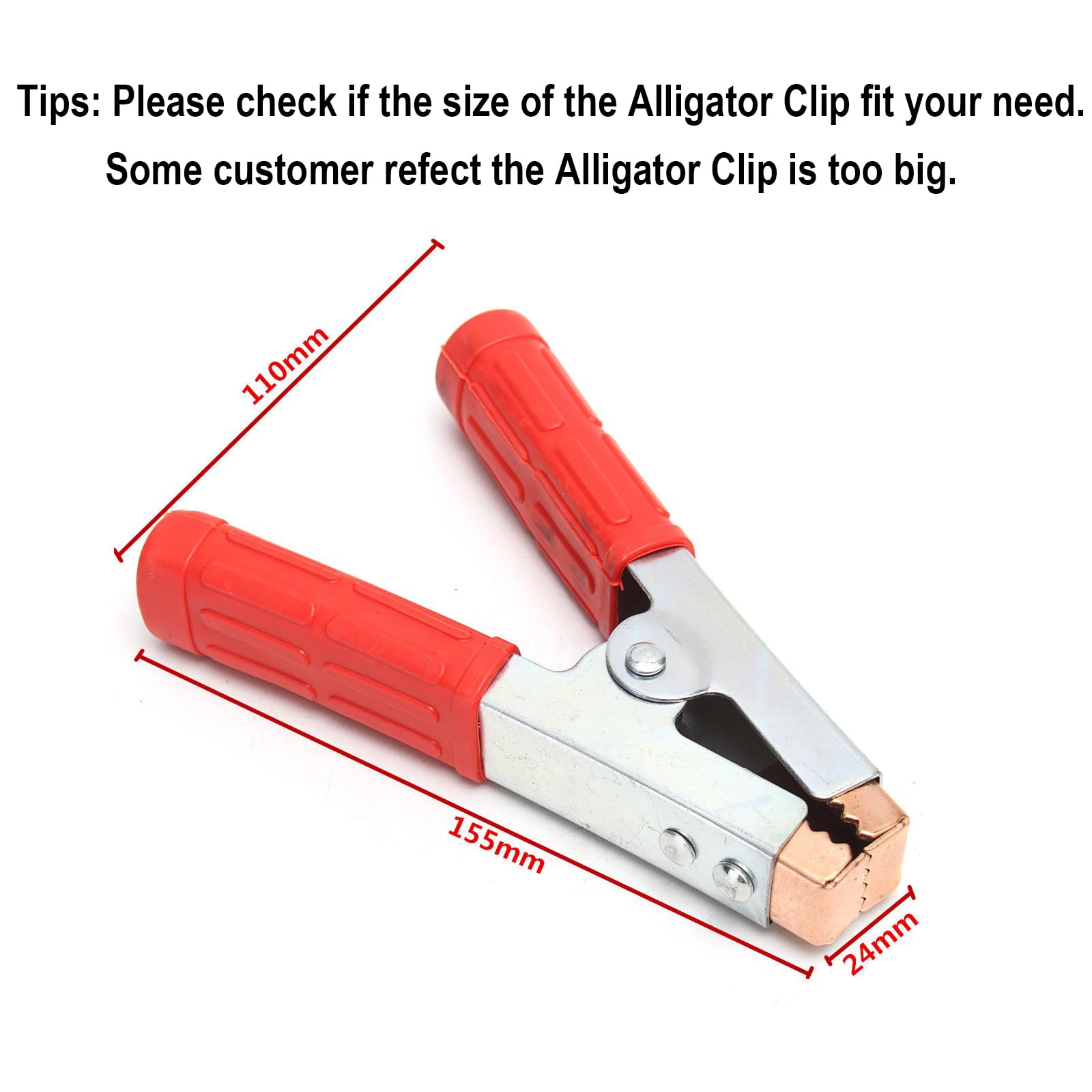 155mm Large size and light weight with sharp teeth. Not cheaply made, very strong and durable. Max opening width of insulated alligator clips is about 1.19 inch / 30mm, which is widely used in various electrical engineering, voltage testers, and suitable for all car and truck batteries.