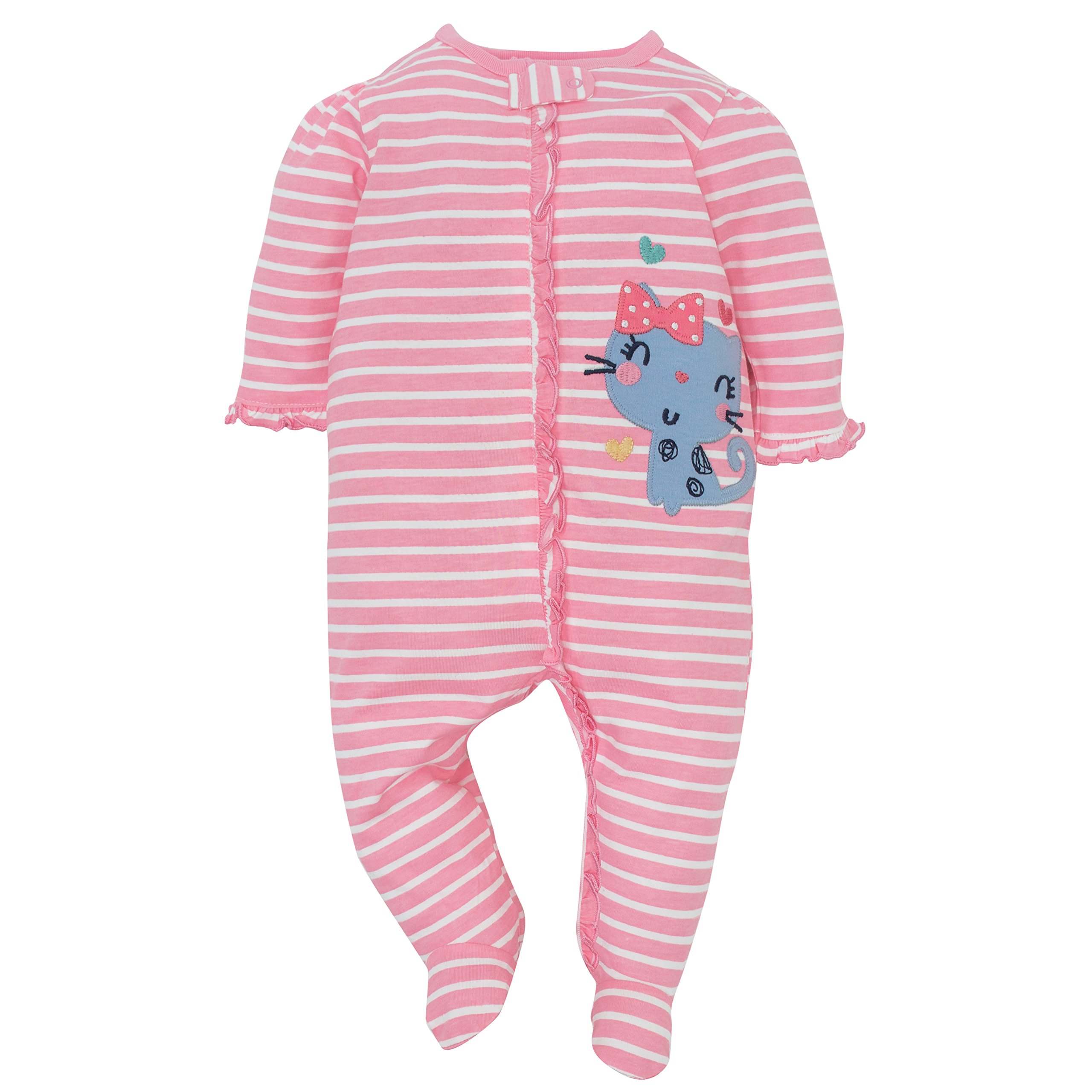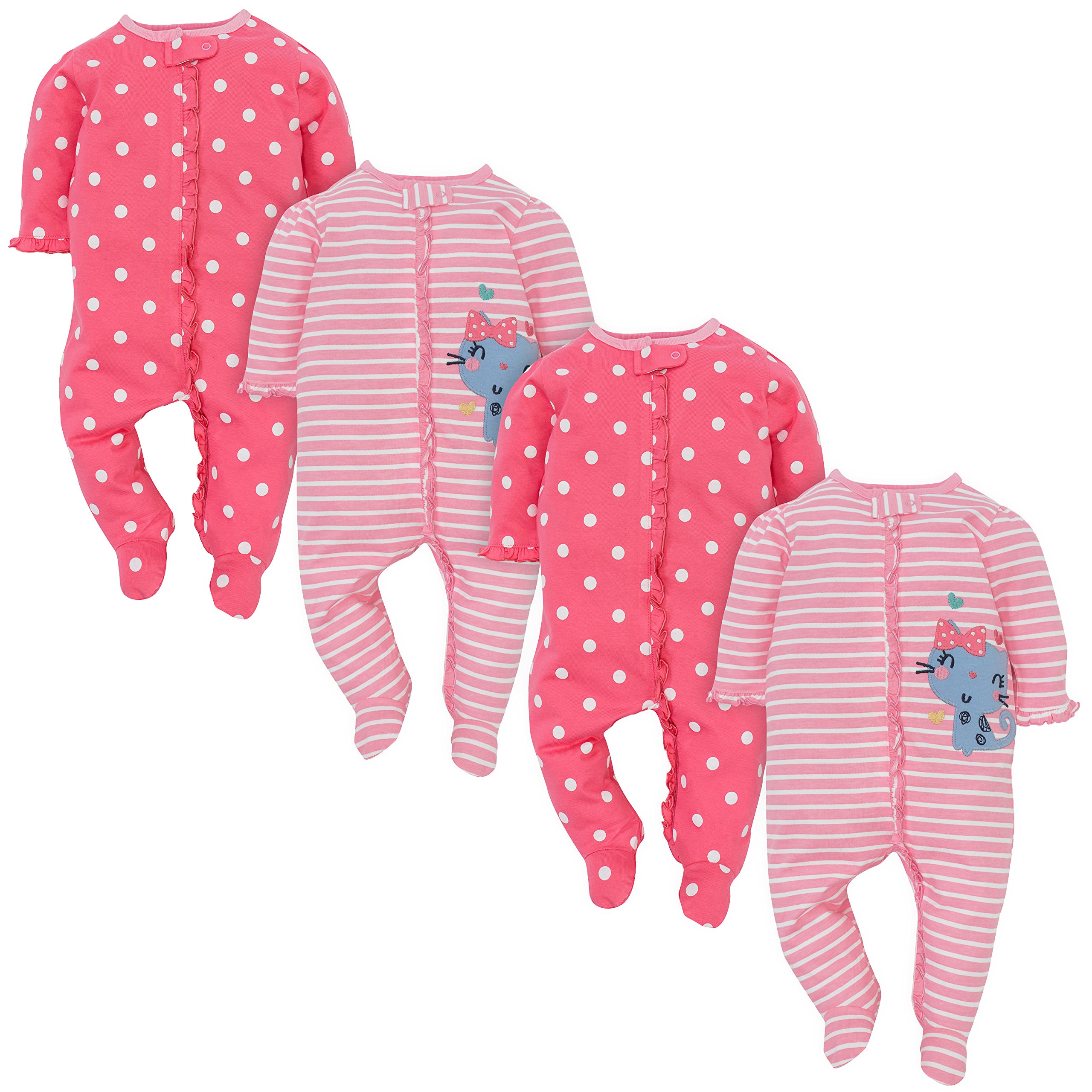 Description Gerber Sleep ‘n Plays are the ultimate footie pajamas baby is sure to love! These soft footies are made with 100% cotton, a comfortable fabric that’s perfectly breathable to prevent irritation against baby’s delicate skin. They’re appropriate to use as newborn footie pajamas as they’re made to comply with all safe sleep standards. They’re also available in sizes all the way up to 6-9M to fit older or larger babies. Each Gerber Sleep n’ Play features a zipper down the front of the outfit to allow for easy and fast diaper changes. This zipper makes the baby sleeper incredibly easy to put on as well as to take off. Atop the zipper is a safety tab with a snap to keep the zipper held in place. This reduces irritation caused by baby’s chin being poked by the zipper. These baby sleepers are footed to add extra warmth which is wonderful for sleepy time as well as if there is a chill in the air. It also means no fooling around with baby socks! These footie pajamas kids will love to wear to bed because of their supreme comfort as well as cute and fun patterns. They’re suitable baby girl sleepers as well as baby boy sleepers. Babies love the comfortable feel and parents love how cute they look! But these Sleep n’ Plays aren’t just for sleep! They’re wonderful comforatble, casual outfits to wear during the day. They allow babies mobility and provide warmth. They’re perfect for play but are cute enough to be worn out on the town! These outfits are perfect to wear on a stroll outside, to the grocery store, to day-care, or to grandma and grandpa’s house! The possibilities are endless! The versatility of these outfits truly gives them a spectacular value that all parents will appreciate. They make an excellent gift for any baby boy or baby girl you know and love! Gerber provides high-quality products that are easy and convenient for parents as well as cute and comfortable for baby. Gerber provides safe products that parents can trust.