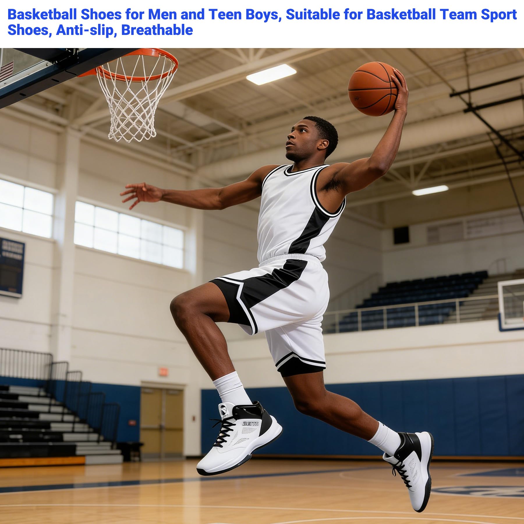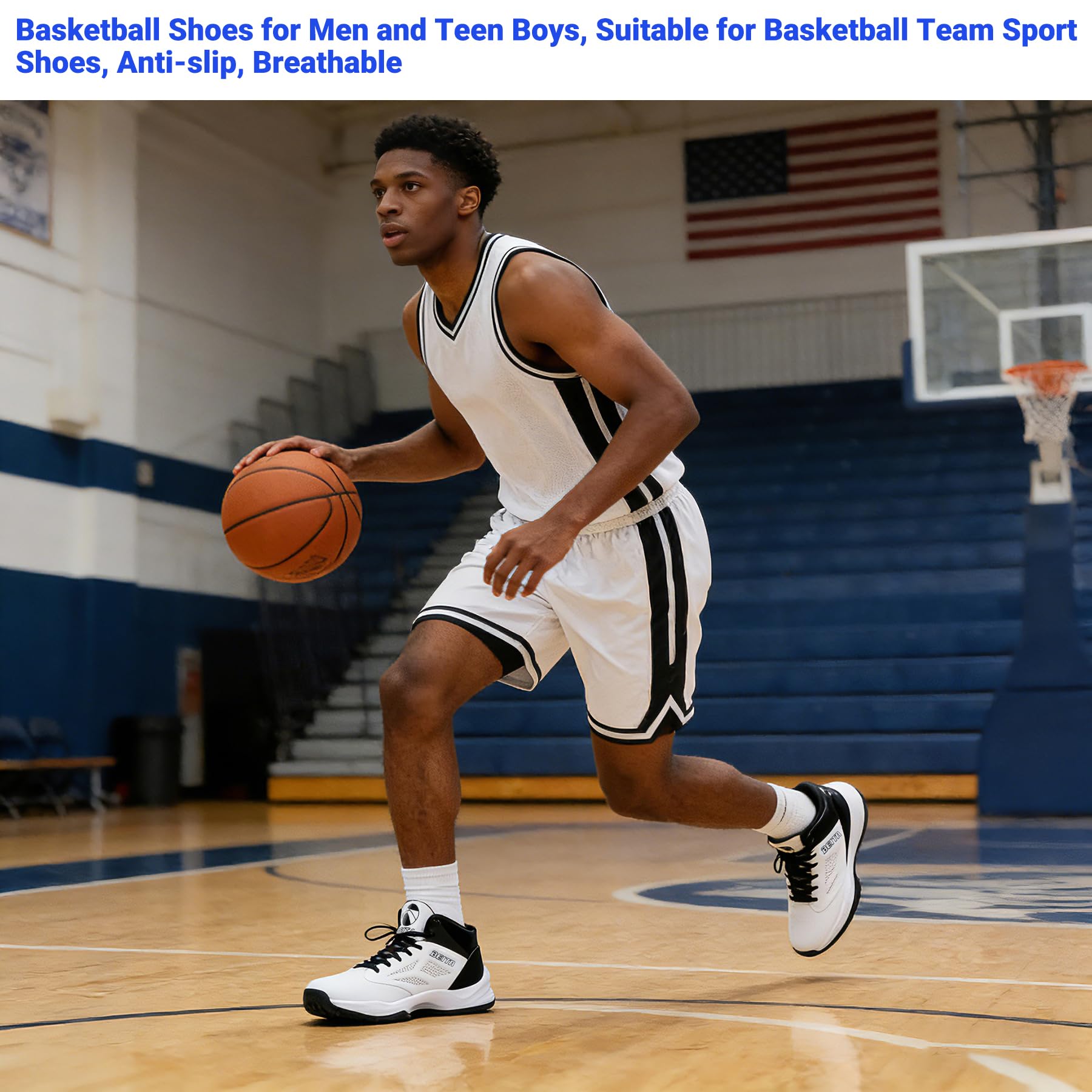【Breathable Synthetic Leather Upper】 Basketball shoes for men, Lightweight soft upper offers flexibility.
