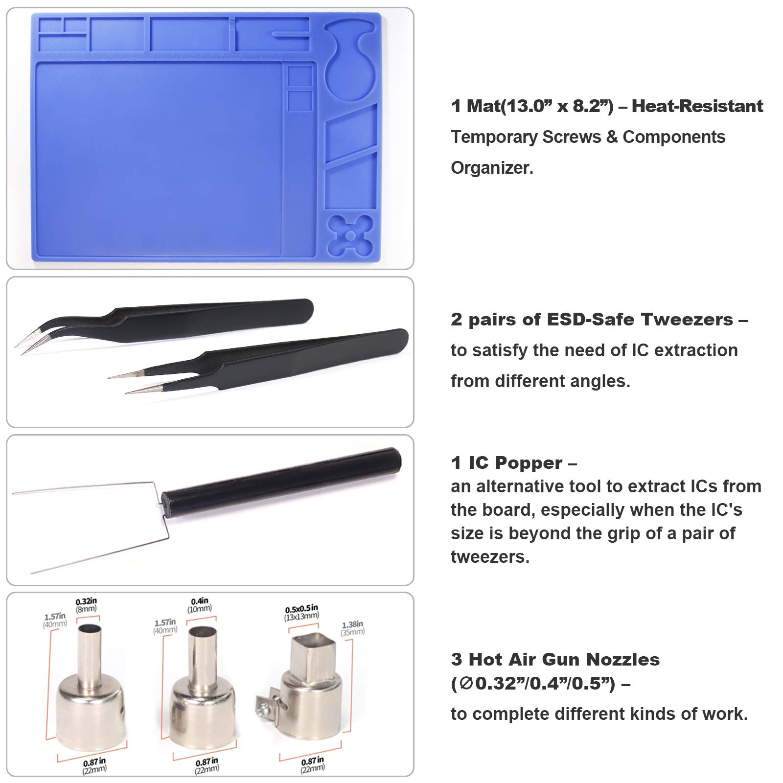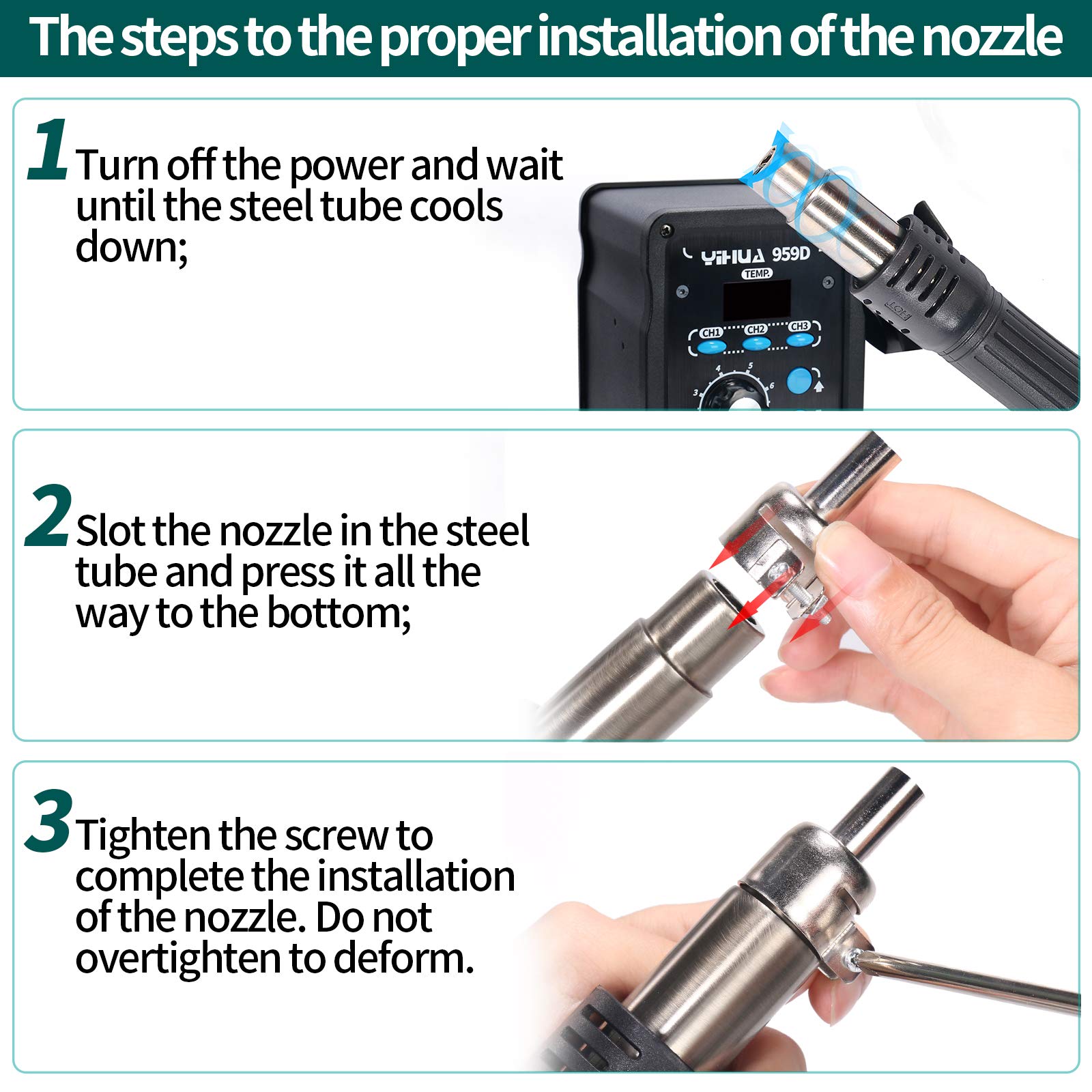 Advanced Functions & Safety Features– An in-holder standby function to help cool the hot air gun when it is not in use, preserving your hot air gun in mint condition for longer. Equipped with YIHUA’s exclusive Hot Air Gun Fail-safe function to make your work safer, and effectively prevent the risk of any fire hazards.
