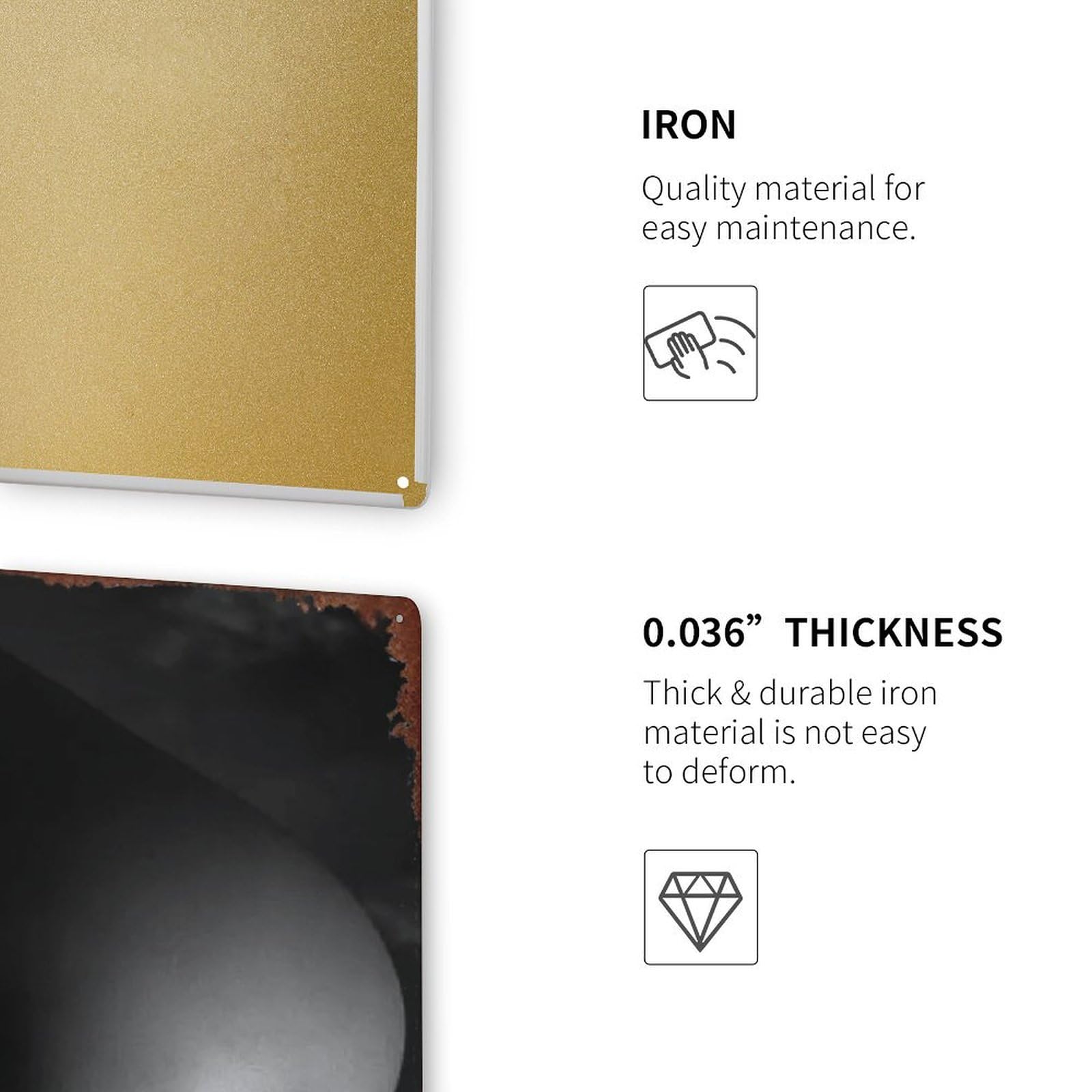 4 pre-drilled holes for easy hanging. The size is 140 x 200mm(5.5x8 inches) 8 x 12 inches.12x16inch Packaging: Do you need decoration in your home or garage, bedroom, coffee shop, bar, farmhouse, cottage, if you want, I believe our shop will meet your needs, you can find it in our shop Thousands of tin plates. All tin plates are the perfect complement to any area or room. Show them wherever you choose. Indoor or outdoor. Residential apartment, office cubicle, college dormitory, classroom, bar, restaurant, basement, garage, terrace, porch, manhole, kitchen, bathroom, bedroom, so basically...