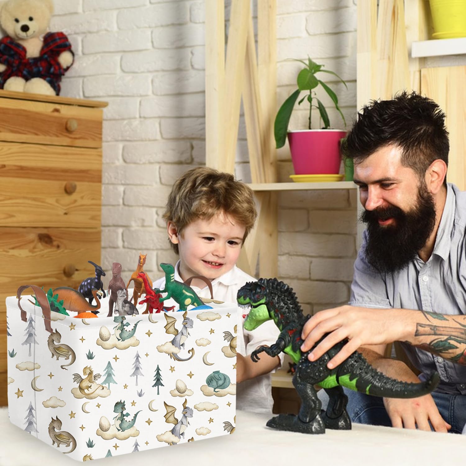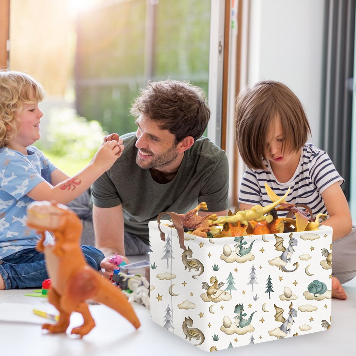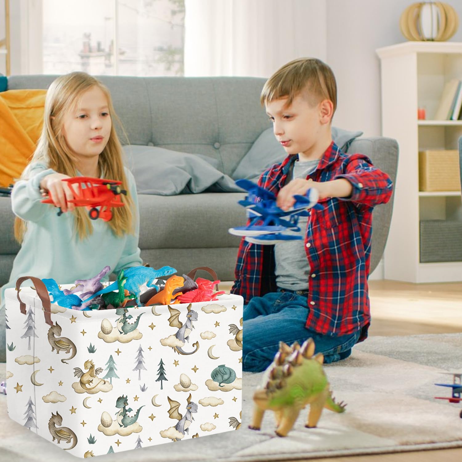 FXOCSHE Rectangular Dinosaur Baskets,Watercolor cute dragon fairy tale kids nursery basket,Cloud moon star dragon egg laundry basket for kid,Toys Box,Dinosaur Room Decor(Cute dinosaur)