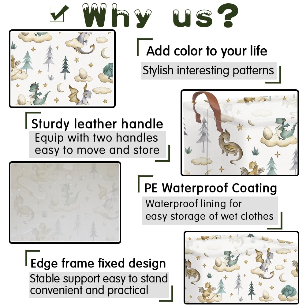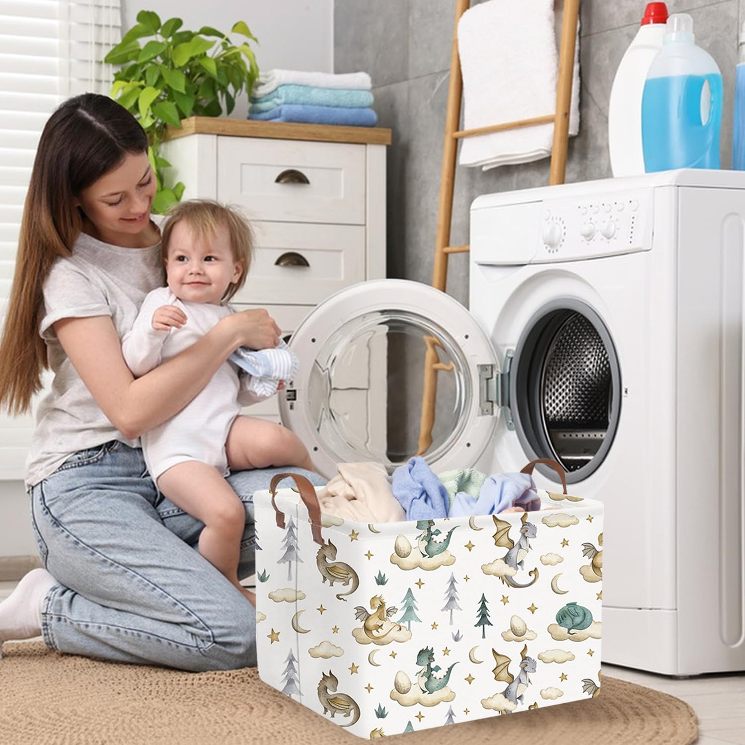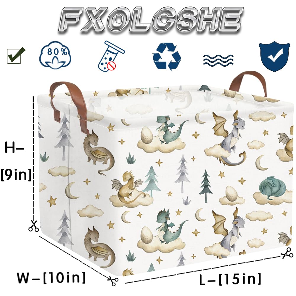 FXOCSHE Rectangular Dinosaur Baskets,Watercolor cute dragon fairy tale kids nursery basket,Cloud moon star dragon egg laundry basket for kid,Toys Box,Dinosaur Room Decor(Cute dinosaur)